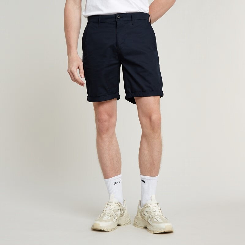 Chino shorts Bronson offer a straight fit. The inset pockets are finished with a broad welt. One of the back pockets shows a button closure.
