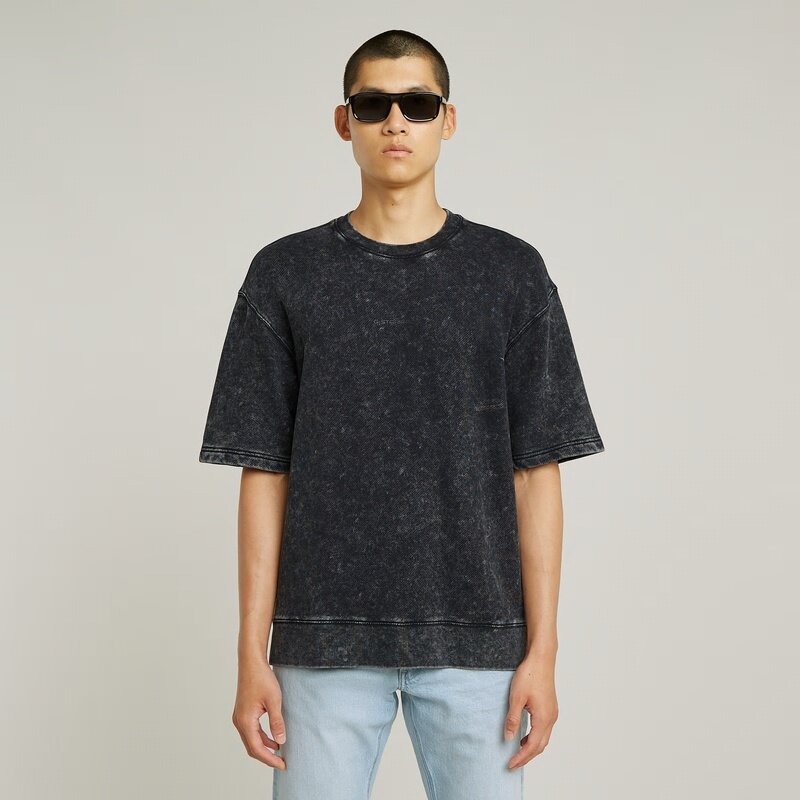 Short sleeved sweater Acid Wash is cut in a relaxed loose fit. The overdye dye process gives character.