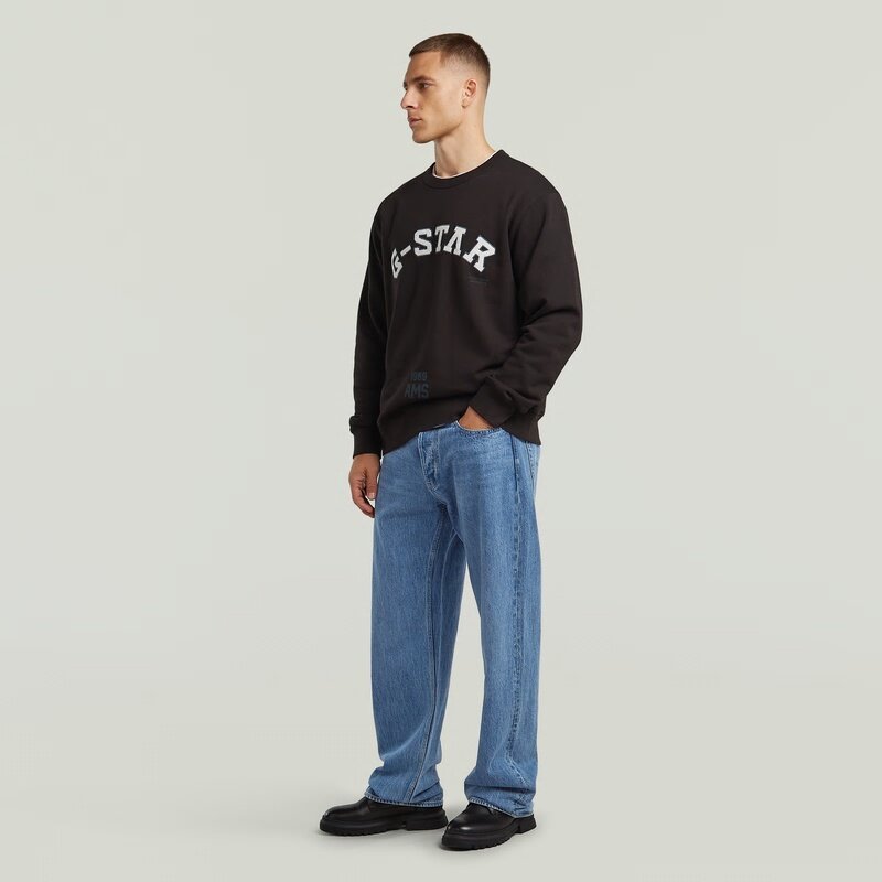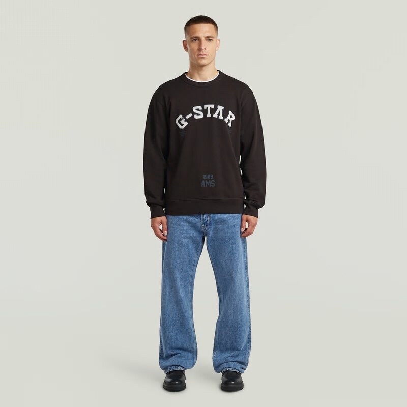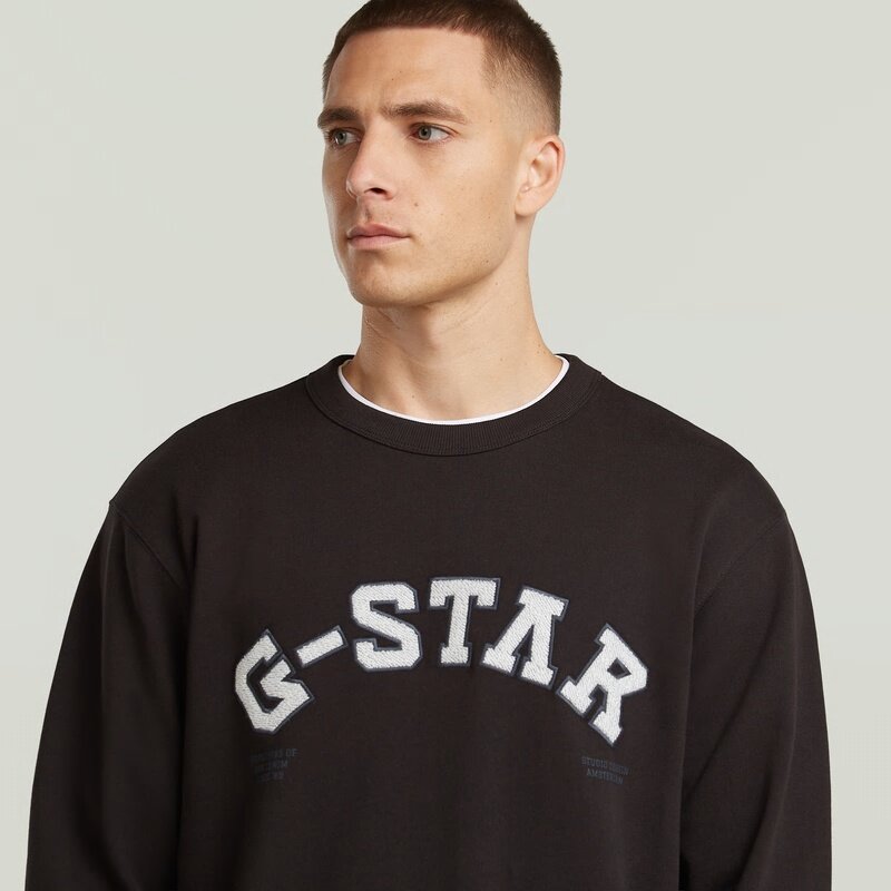 The Applique Sweater features a relaxed fit and a striking graphic design.