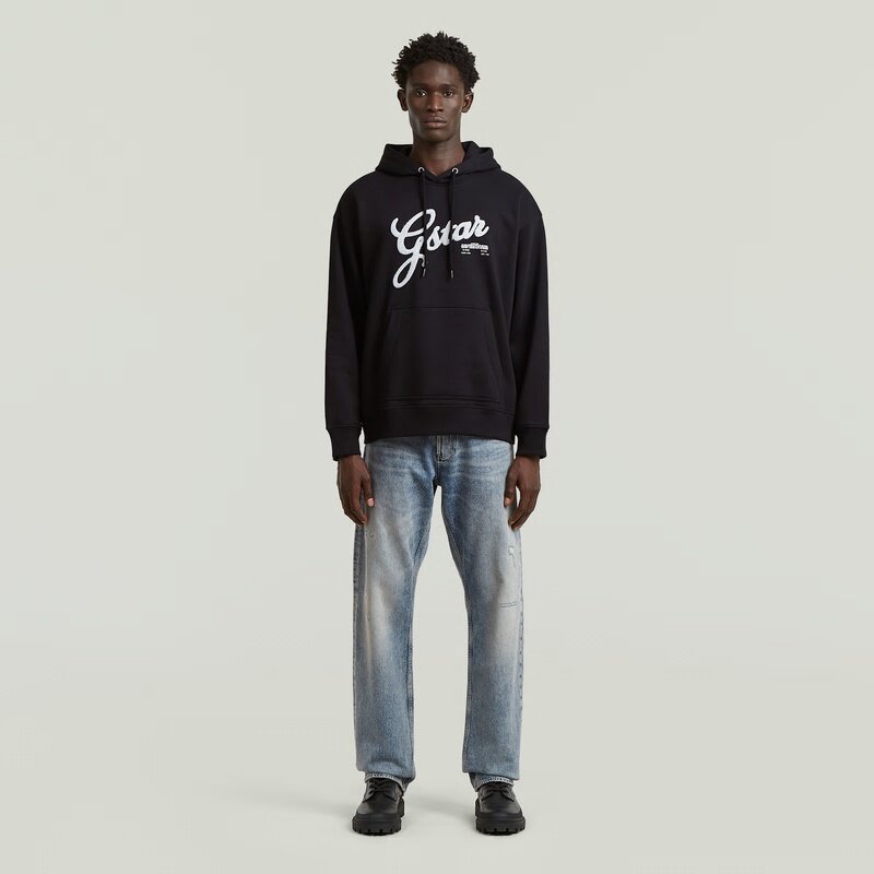 The Chenille Relaxed Hoodie Sweater features a relaxed fit and a hooded design, enhanced with graphic details for a bold look.