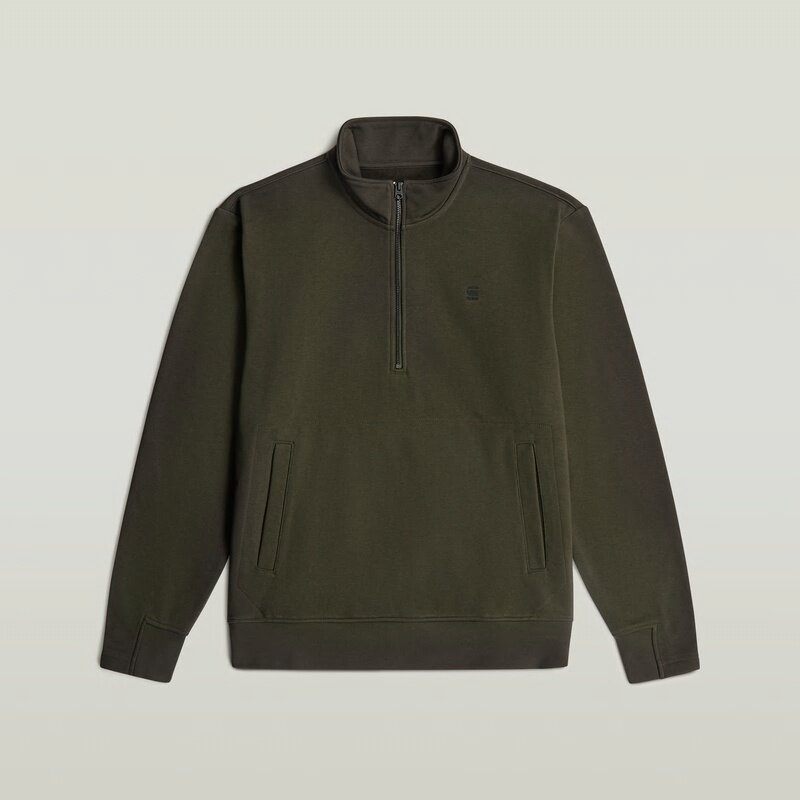 Half zip sweater Nifous offers a raised collar. A kangaroo pocket with broad welt entries is integrated into the front. The sleeves are semi cuffed, as the ribbed section is placed on the half.