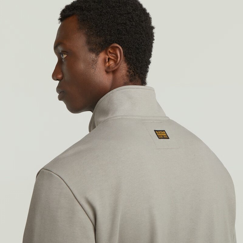 Zip thru jacket Nifous offers a straight fit with a raised collar and welt pockets at the waist. The sleeves are semi cuffed, as the ribbed section is placed on the half.
