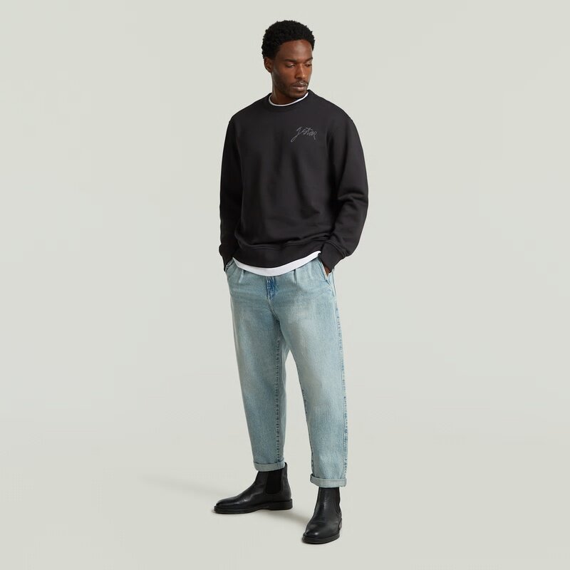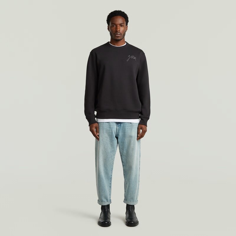 The Script Sweater offers a relaxed fit with a round neck and long sleeves, perfect for everyday comfort.