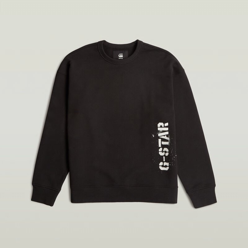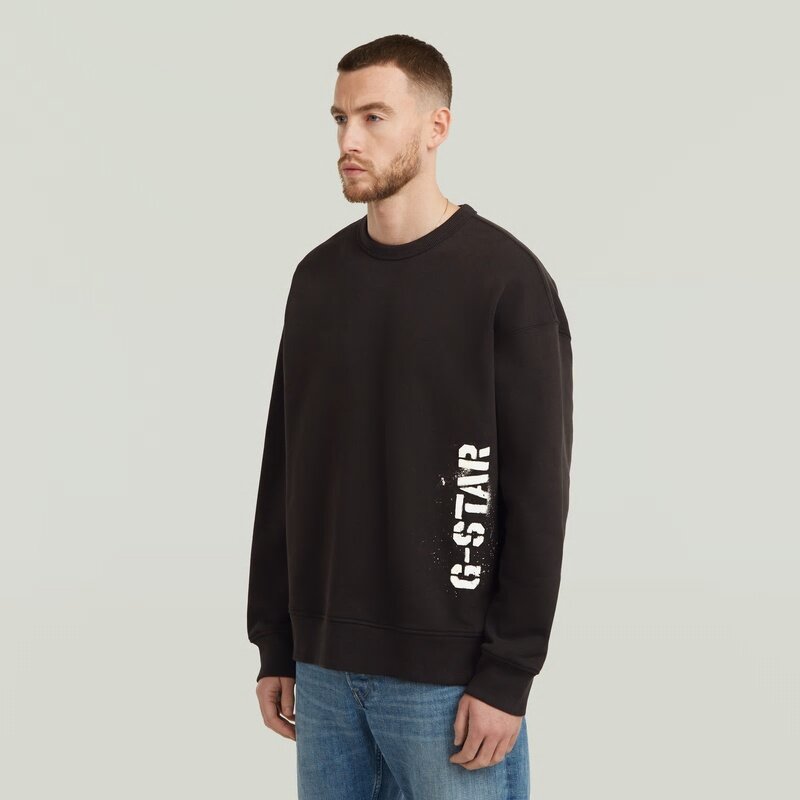 The Sprayed 89 Loose Sweater features a relaxed fit with a round neck and graphic details.