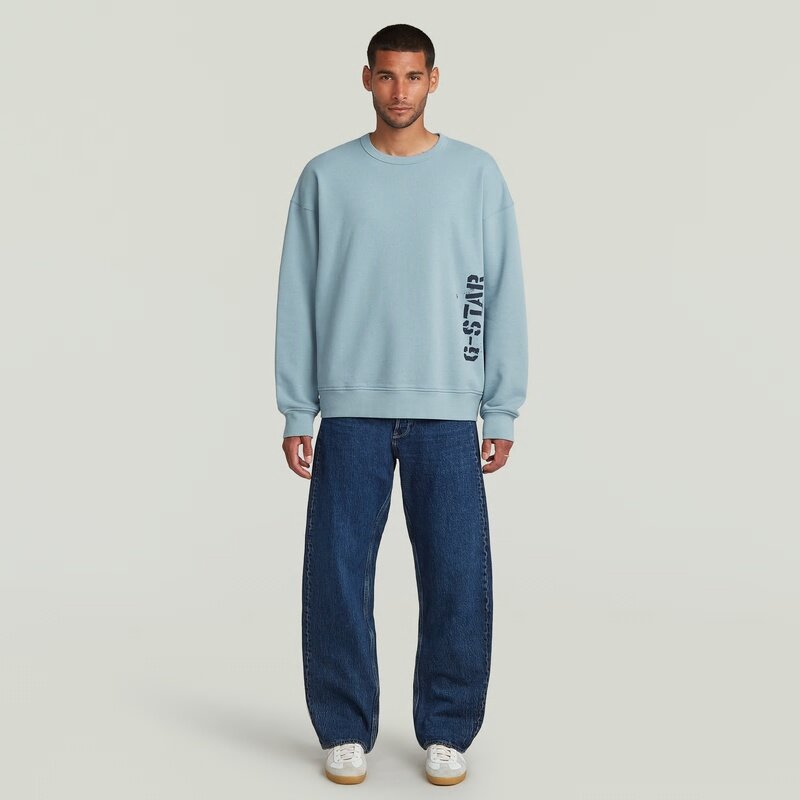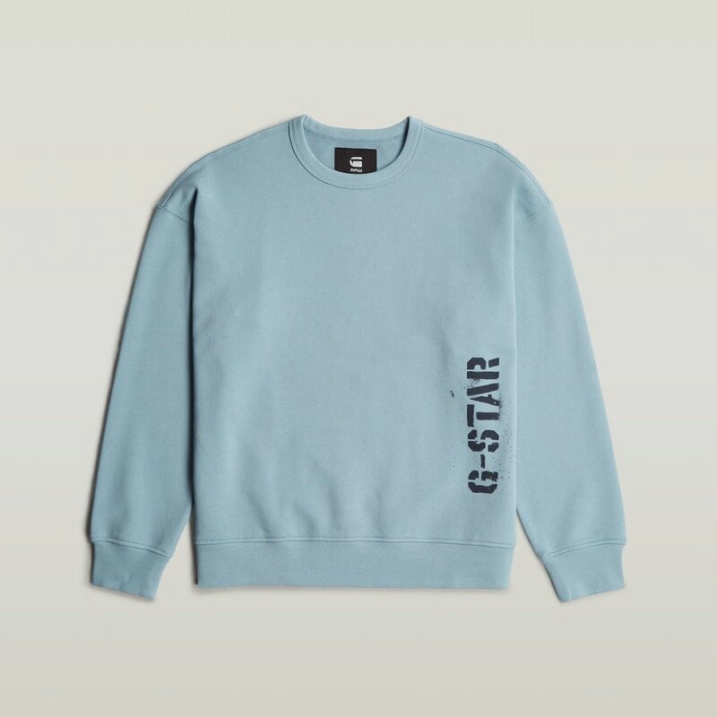 The Sprayed 89 Loose Sweater features a relaxed fit with a round neck and graphic details.