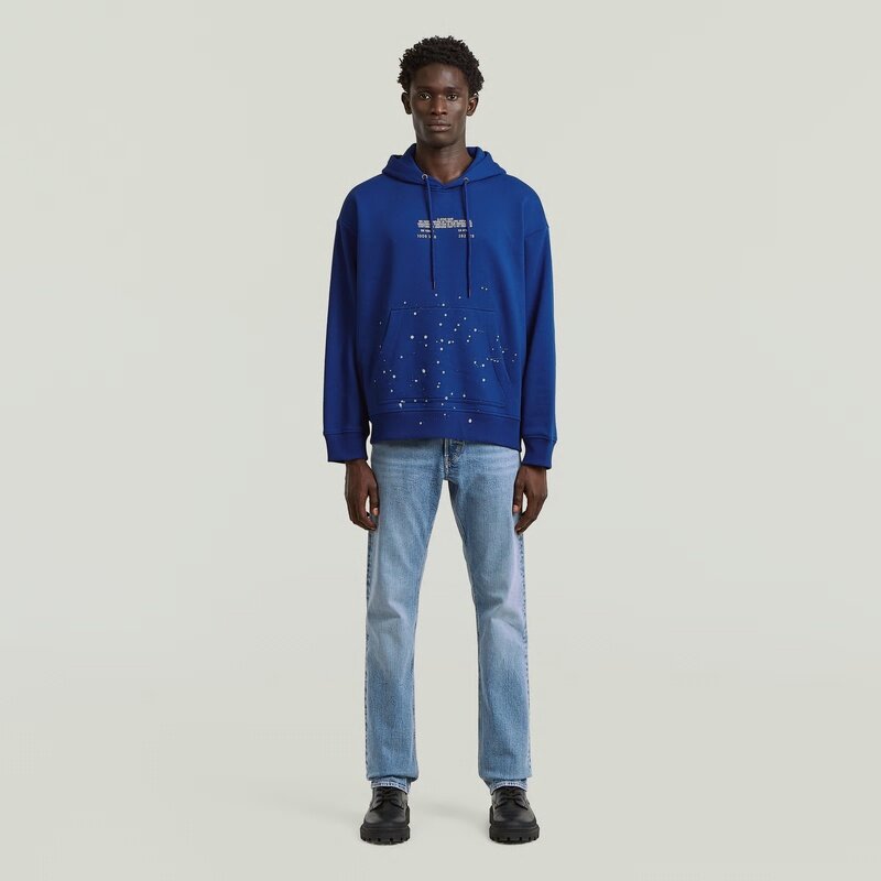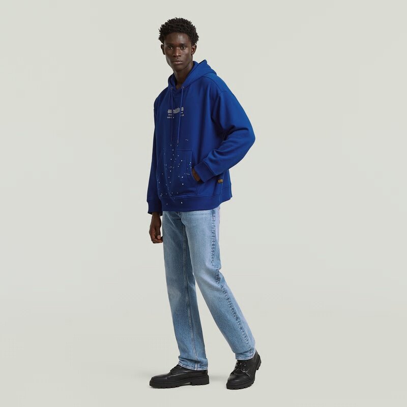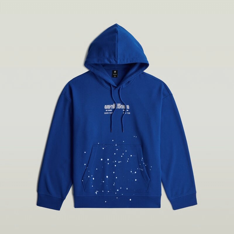 The Text Splatters Relaxed Hoodie Sweater features a relaxed fit and a hooded design for a casual and versatile look.