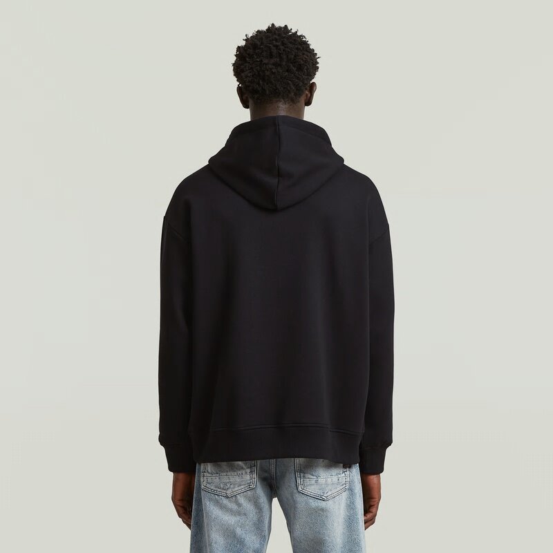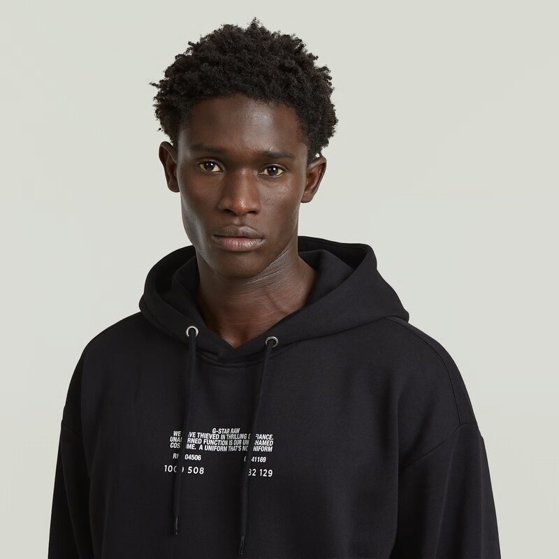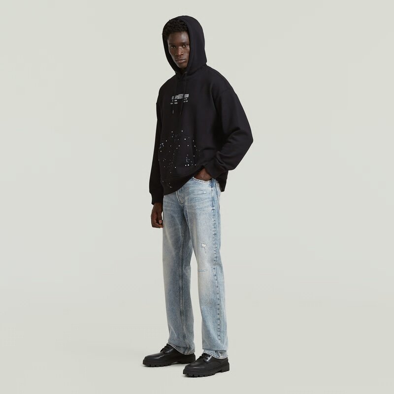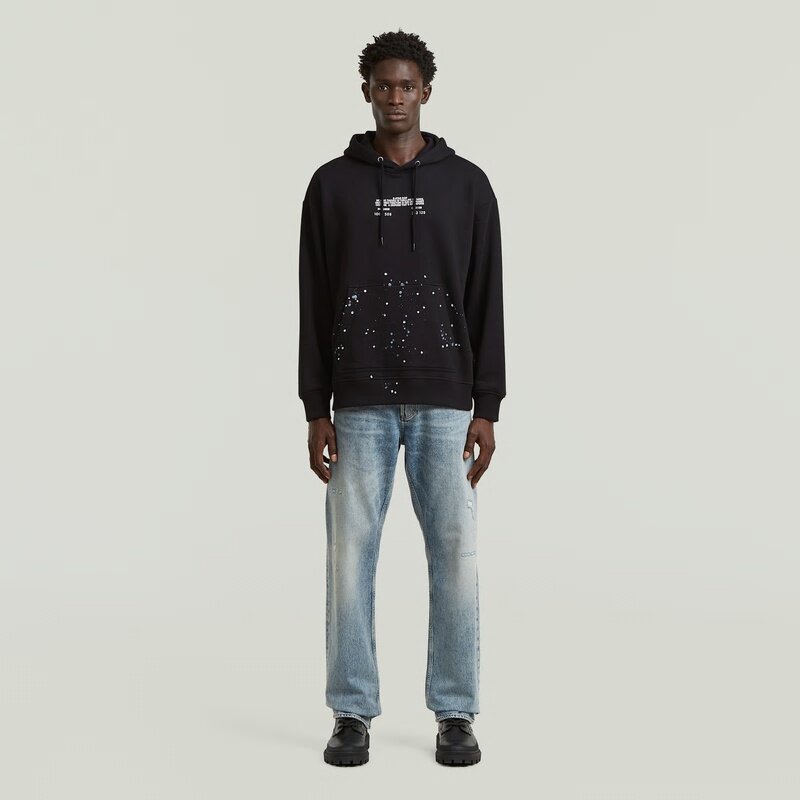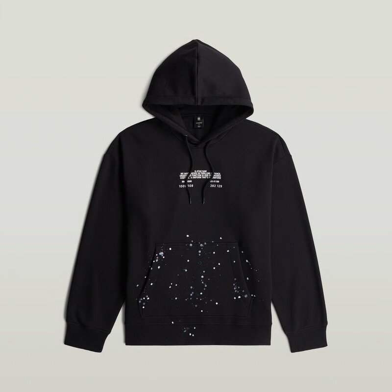 The Text Splatters Relaxed Hoodie Sweater features a relaxed fit and a hooded design for a casual and versatile look.