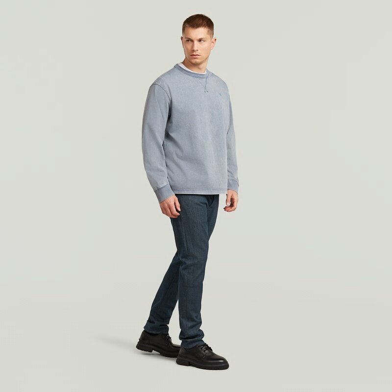 The Washed Sweater features a relaxed fit with a round neck, offering a stylish and comfortable look.