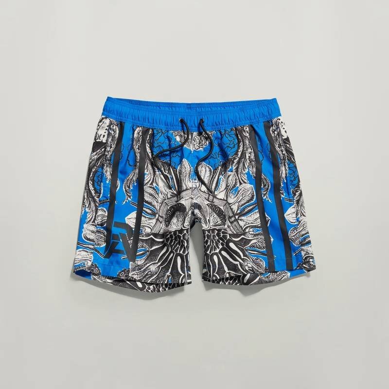 Swim shorts Dirik Jellyfish feature an allover graphic printed design. These shorts offer an elastic waistband with an incorporated drawcord. Side seam pockets are combined with a slim welt pocket at the back side. Inside, a mesh lining adds support. The graphic G-Star RAW at the front completes it.