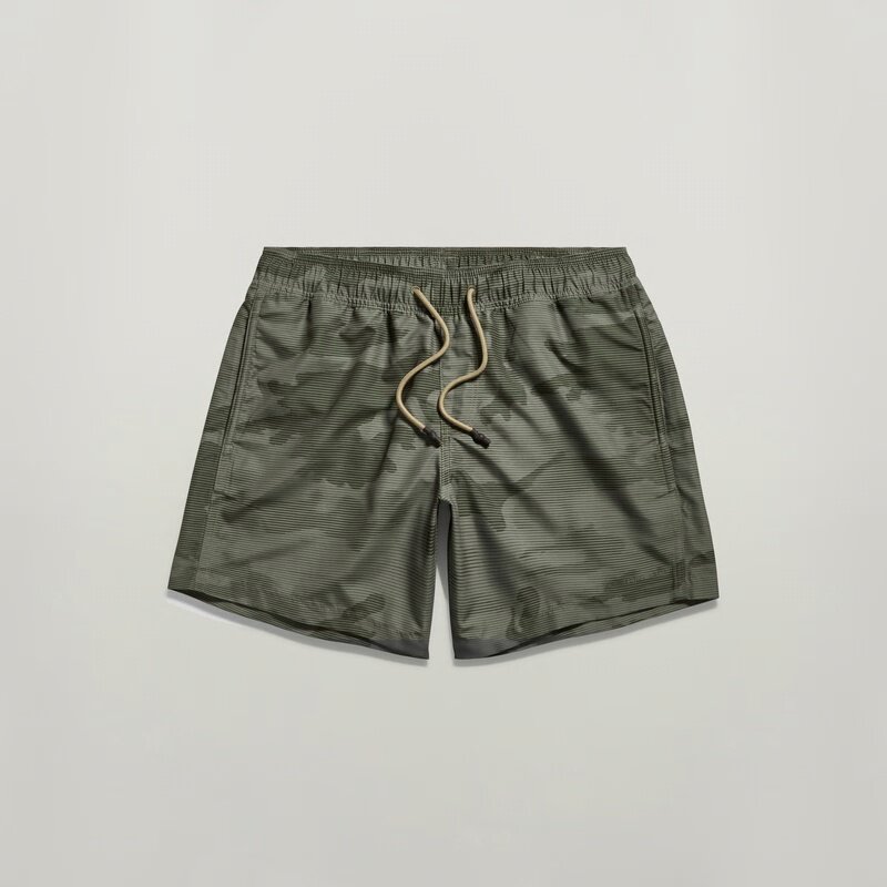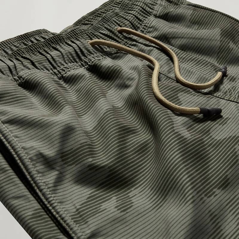This version of the Dirik swim short features an allover printed camo design. The stretchable waistband offers an incorporated drawcord. Side seam pockets and a single back pocket complete it. Inside, a mesh lining adds support.