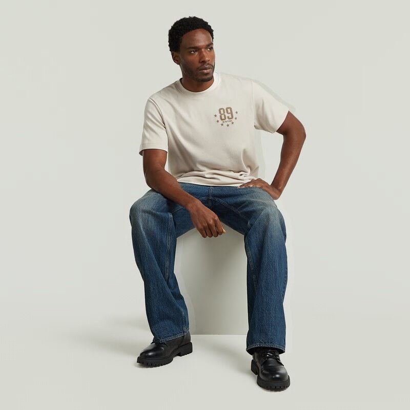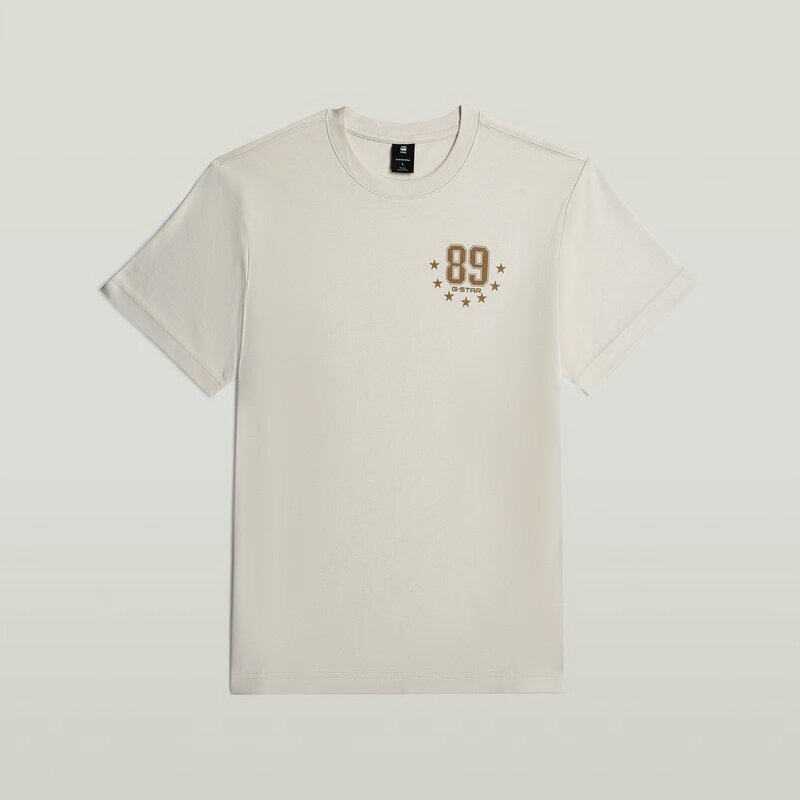 The 89 Back Graphic Loose T-Shirt features a relaxed fit and a round neckline. A bold graphic design adorns the back, adding a distinctive touch.