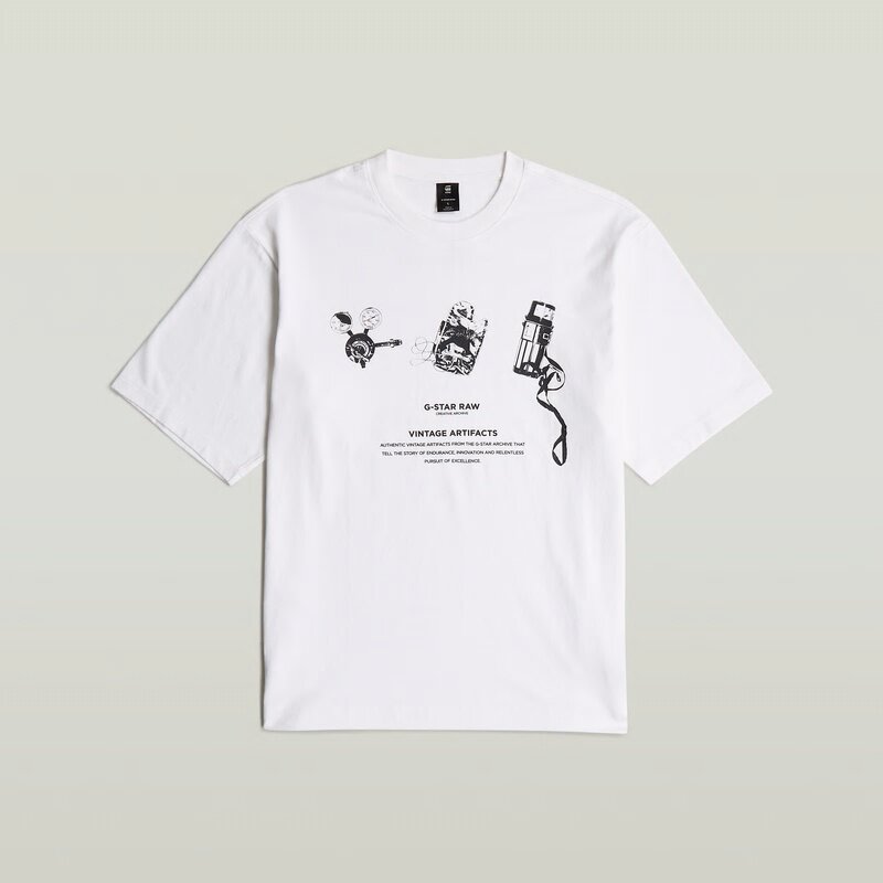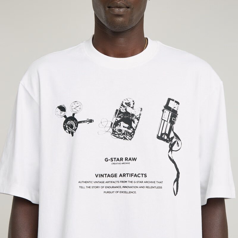 T-shirt Archive is cut in a boxy, oversized fit. A G-STAR graphic print is added to the front and back. The Tyvek vintage artifact label placed at the lower back signs it off.