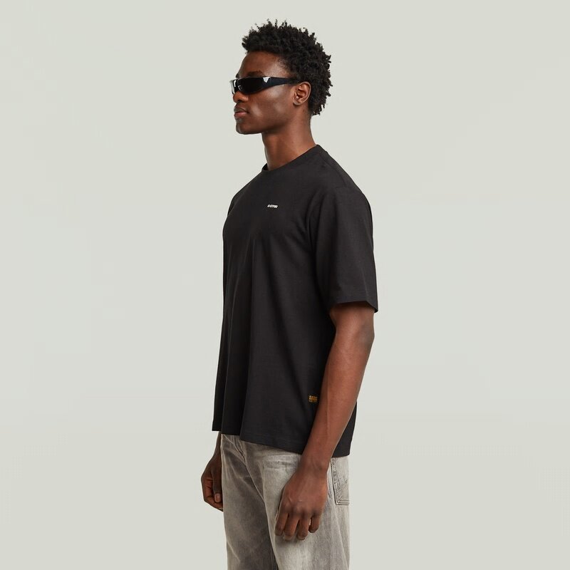 The Boxy Base T-Shirt features an oversized fit with short sleeves and a subtle graphic detail.