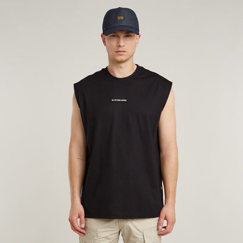 Sleeveless tee Boxy offers a relaxed, oversized fit. The ribbed neckline adds a comfortable finish.