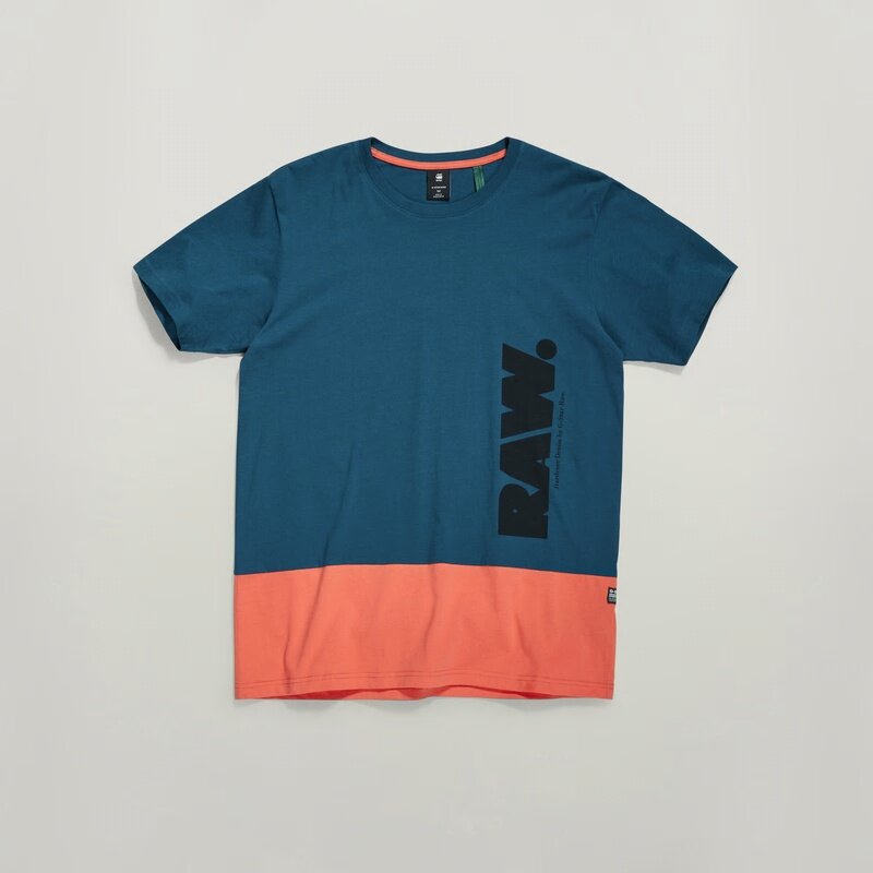 This organic cotton T-Shirt offers a straight fit. The bottom edge is created out of a contrast colored jersey. A RAW graphic added to the front completes it.