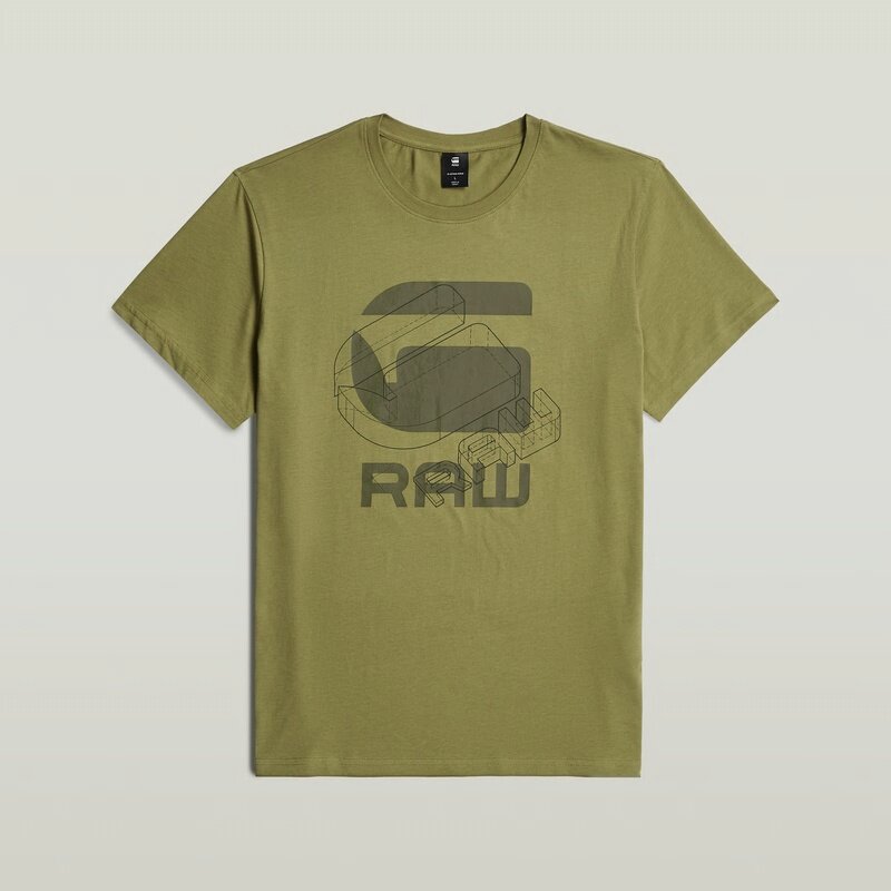 The G Raw T-Shirt features a regular fit with a round neckline and short sleeves, complemented by graphic detailing.