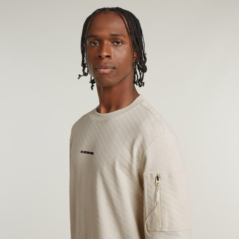 Tweeter Checquard Pocket offers a comfortable piece that feels lightweight as a tee with the aesthetics of a sweater. This lightweight sweater shows a zipper pocket at one of the sleeves. The ribbed cuffs and round neck make it even more comfortable to wear.