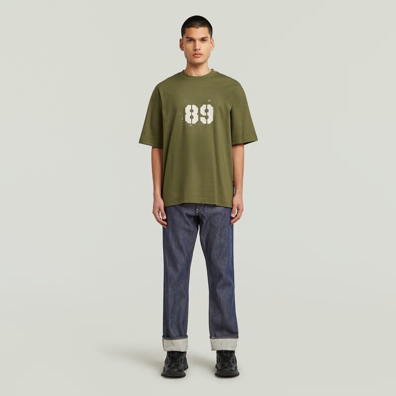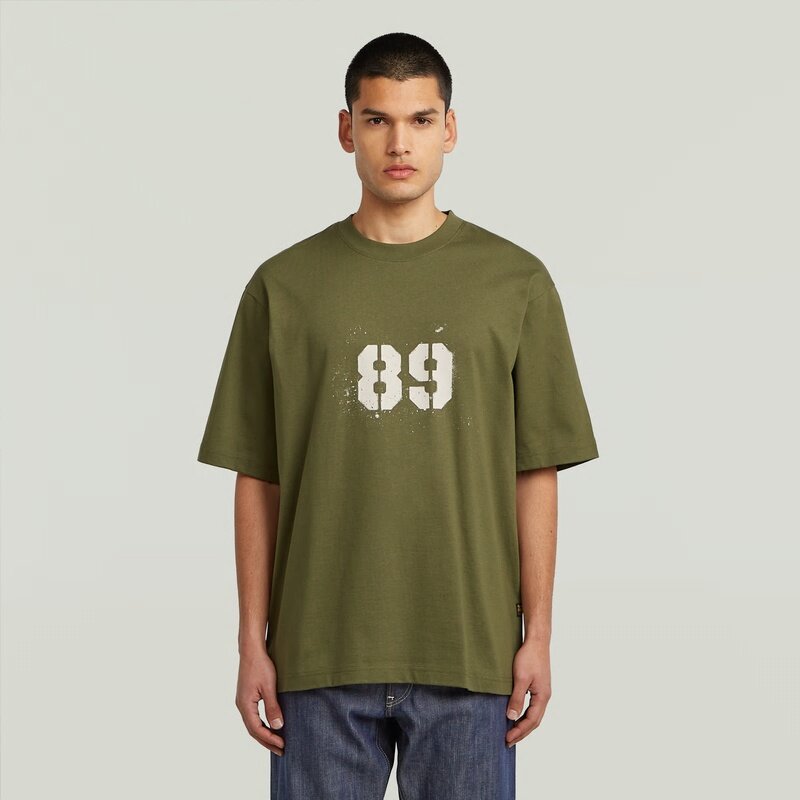 The Sprayed 89 Back T-Shirt features an oversized fit and bold graphic prints on both the front and back. Its round neck and short sleeves provide a classic yet relaxed look.