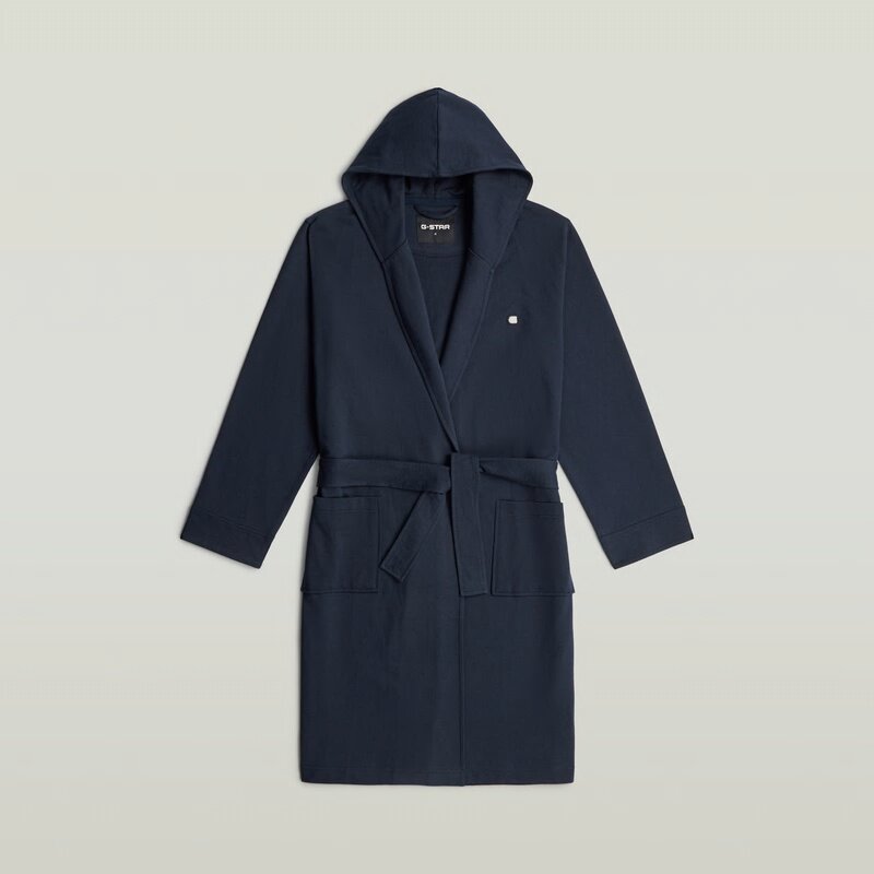 The Bathrobe offers a classic design with a wrap-around closure and a waist tie for a secure fit. Featuring a shawl collar and patch pockets, this robe is both functional and stylish.