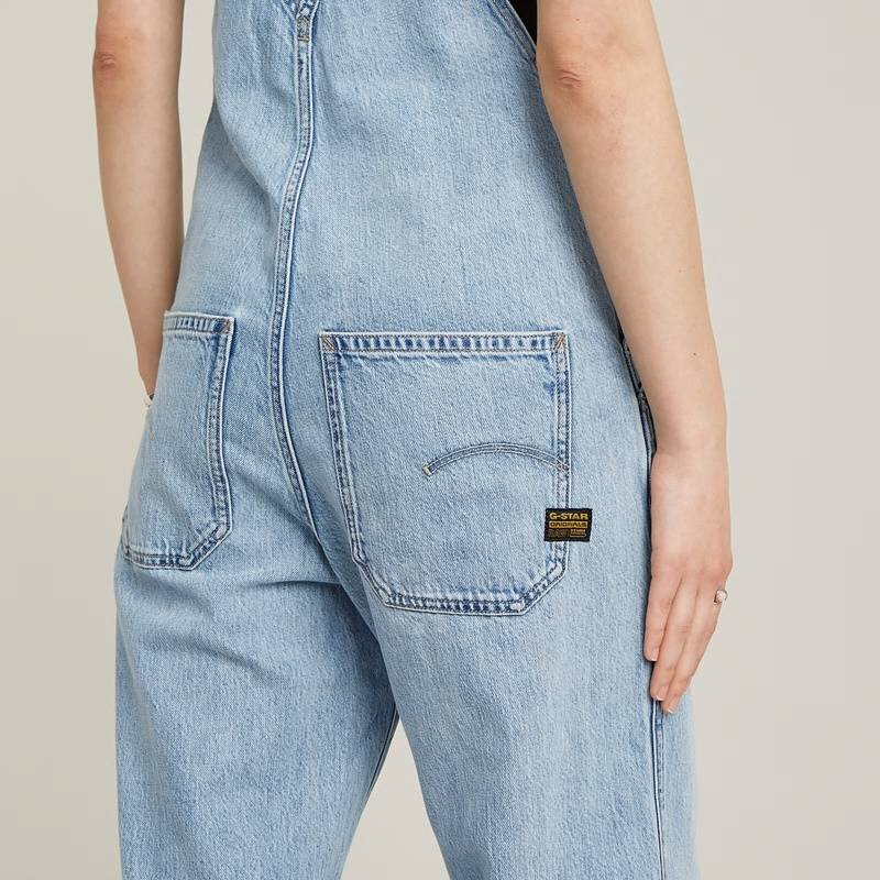 Dungaree Straight Leg offers a comfortable style. Shank buttons at the sides and suspender buckles allow for an easy entrance and personalized sizing.