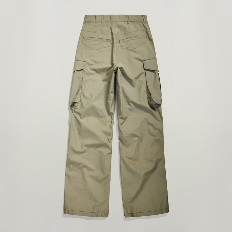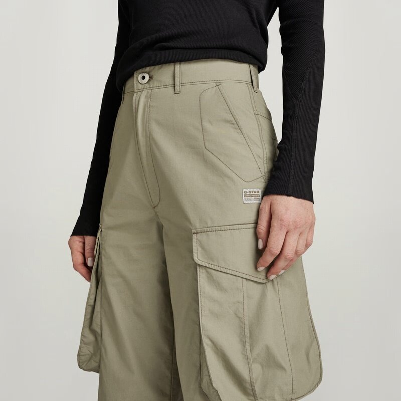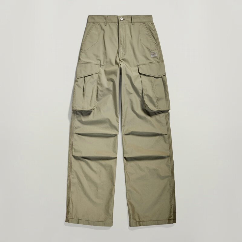 Cargo pants High Waist is fitted around the waist and hip where it proceeds in a wide, straight leg. 3D cargo pockets at the thigh add detail.