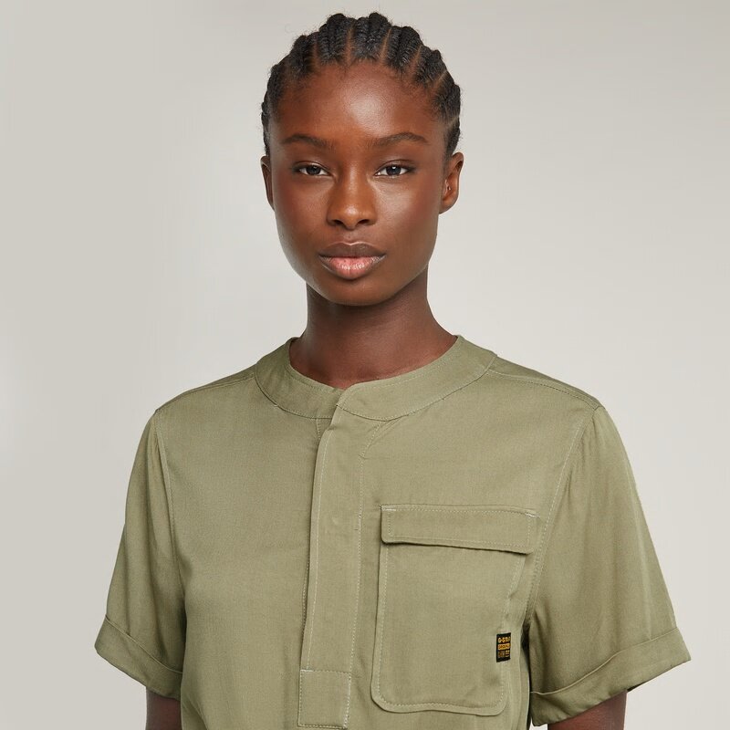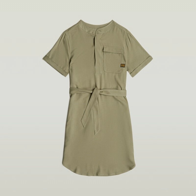 Dress Belted is designed in a knee length and offers a flap pocket at the chest, side seam pockets, a volume pleat at the back and a woven belt.