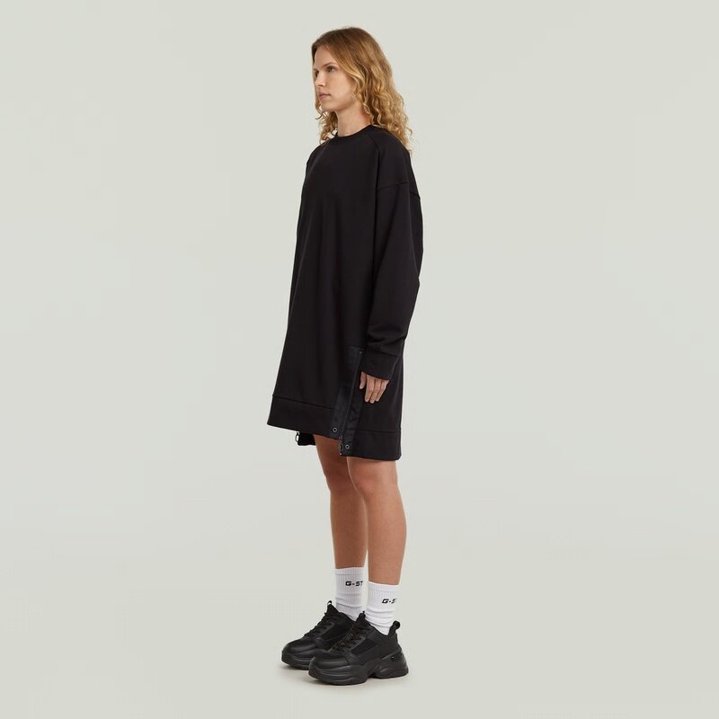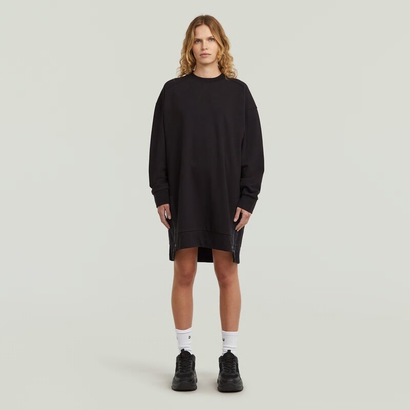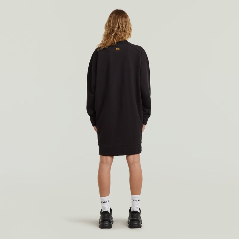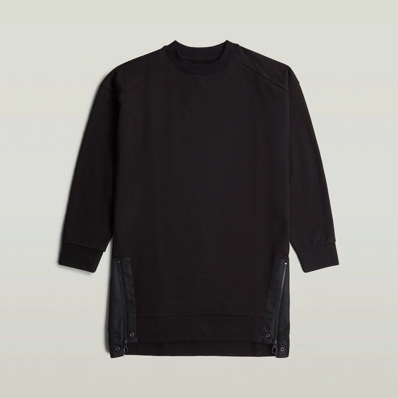 The Biker Zip Sweater Dress combines a relaxed fit with a knee-length design, offering a modern and versatile look. Its long sleeves and round neckline enhance its casual yet stylish appeal.