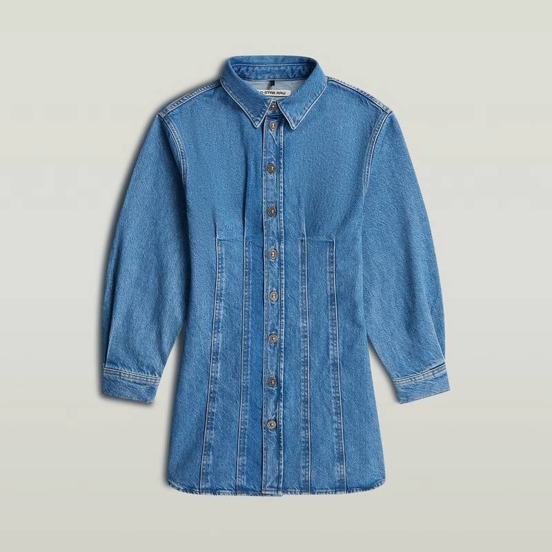 The Carter Denim Shirt Dress features a regular fit with long sleeves and a classic button closure.