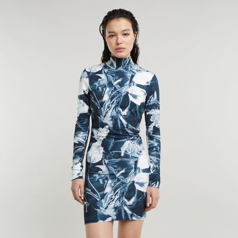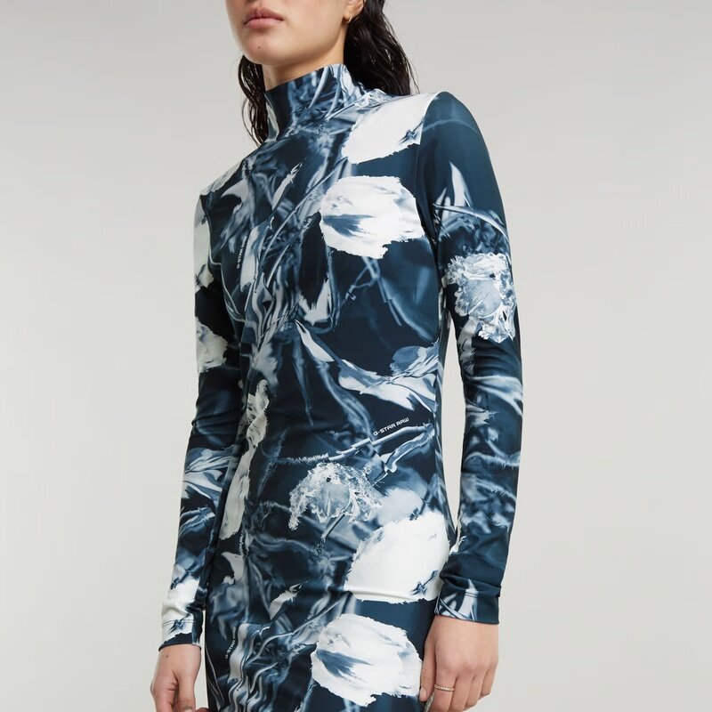 Dress Printed is designed in a slim fit and offers a mock neck. The inserts at the armpit allow for airflow and ease of movement. This dress reaches above the knees. The allover graphic print adds character.