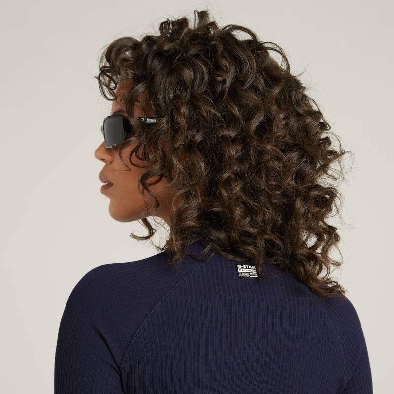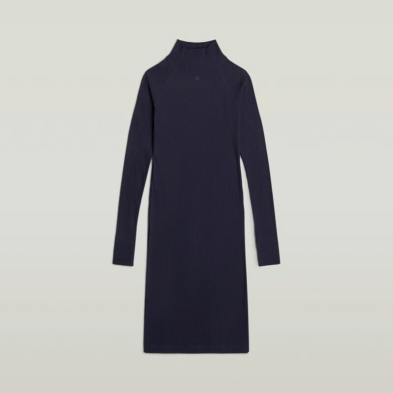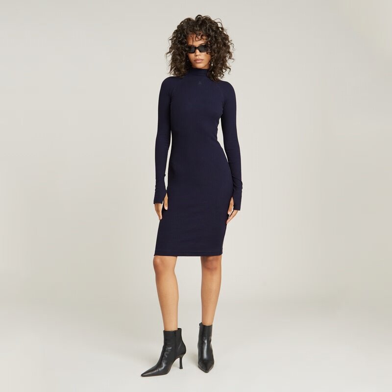 Dress Rib is designed in a slim fit. The raised collar offers a graphic print just below. This knee length dress shows long sleeves that are kept slightly longer. Therefore, a thumbhole is added to the extended cuff.