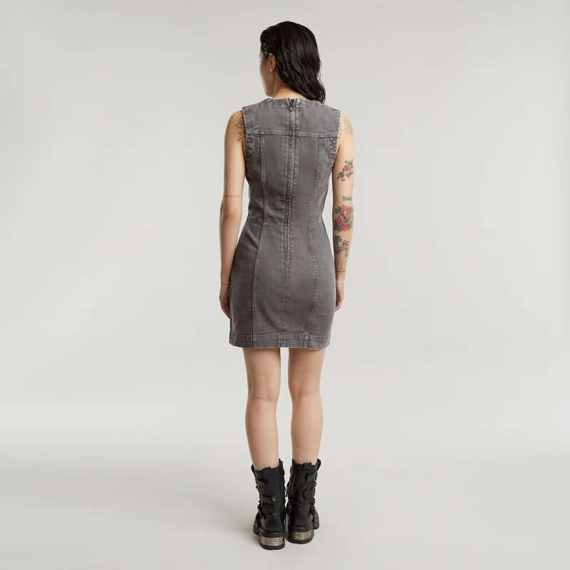 Dress Shift is a sleeveless dress, designed in a super slim fit. The shaped seams add to it. This denim dress offers an upper leg length with a zipper closure at the back.