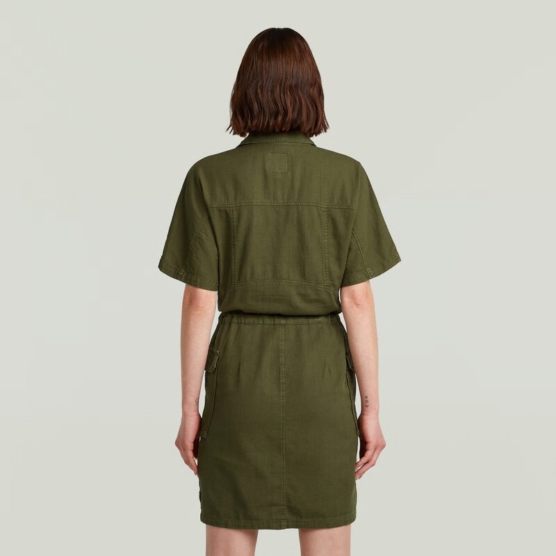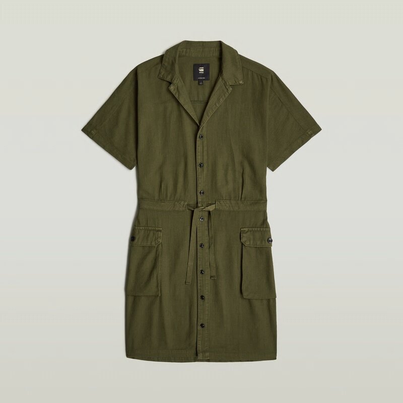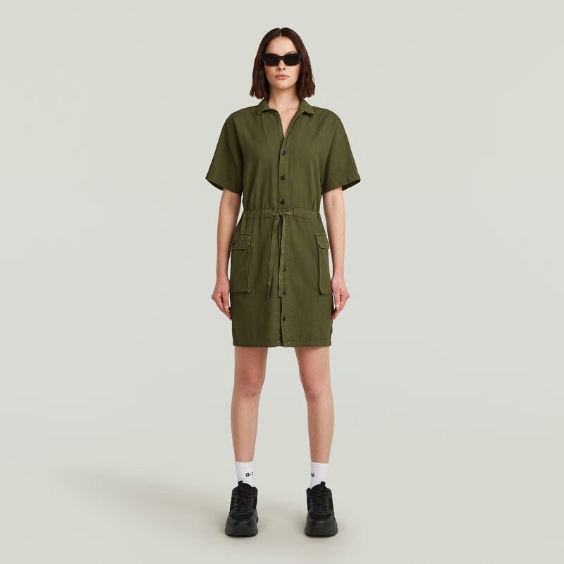 Short sleeves dress Soft Utility is designed in a slim fit and offers a button closure and a drawcord to add more shape. Flap pockets at the waist offer a 3D-effect.