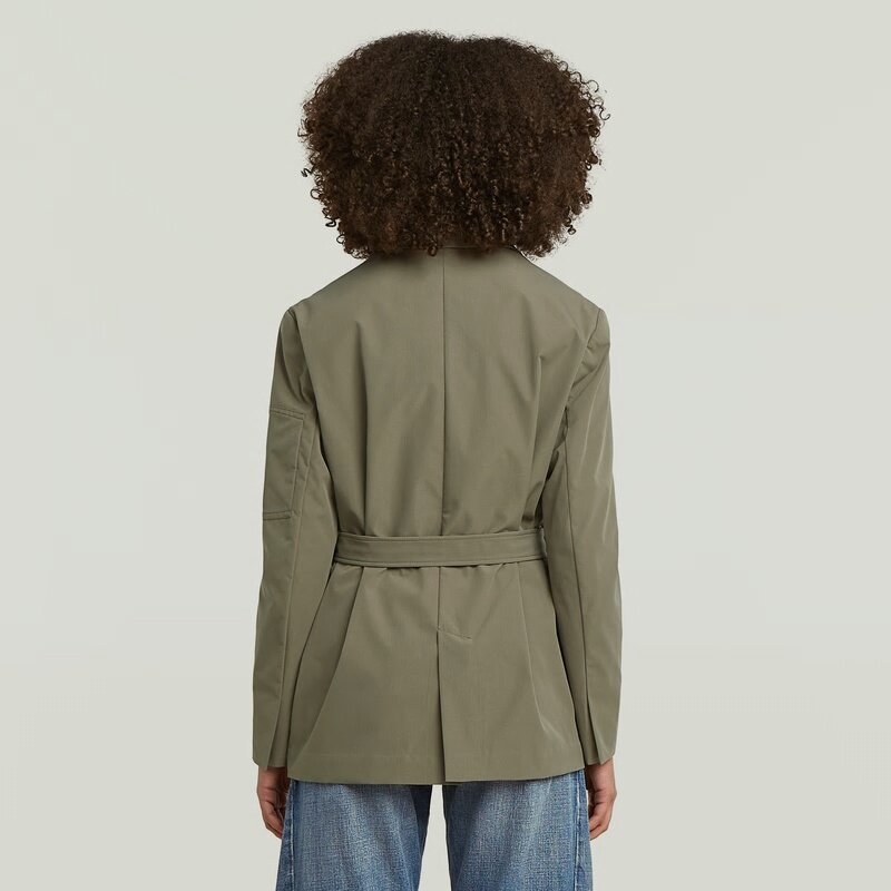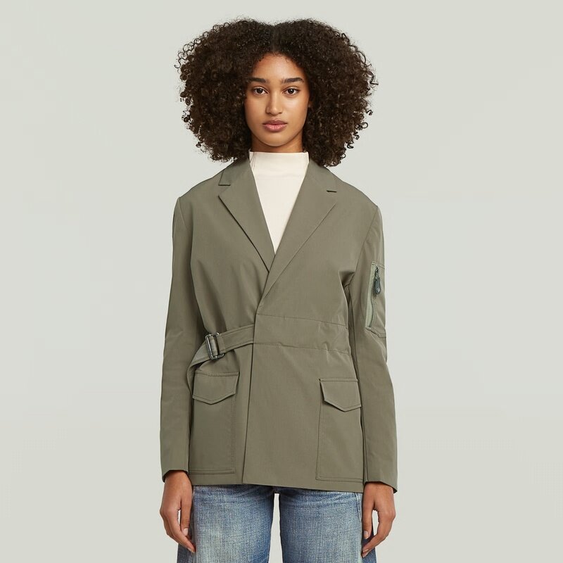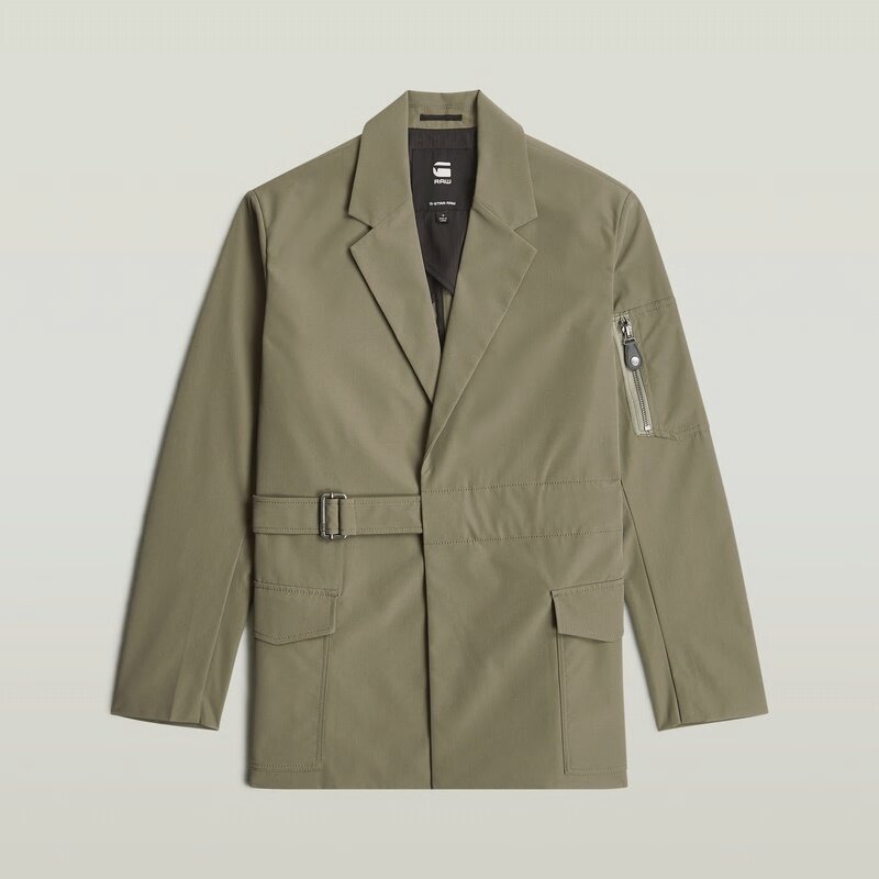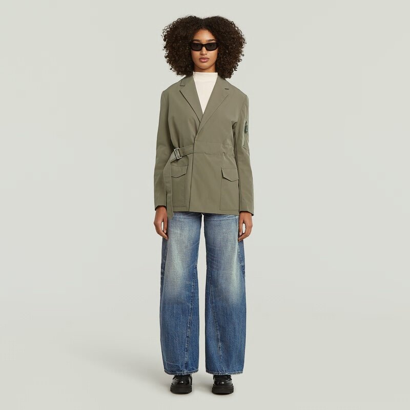 The Belted Blazer offers a regular fit with a single-breasted closure and a belted waist for added style.
