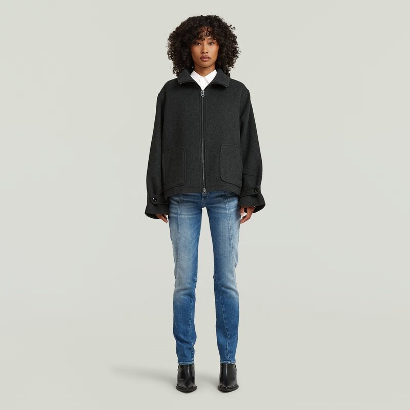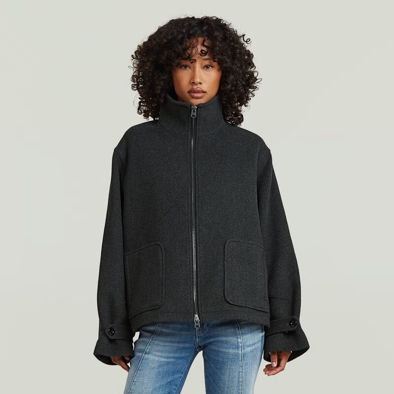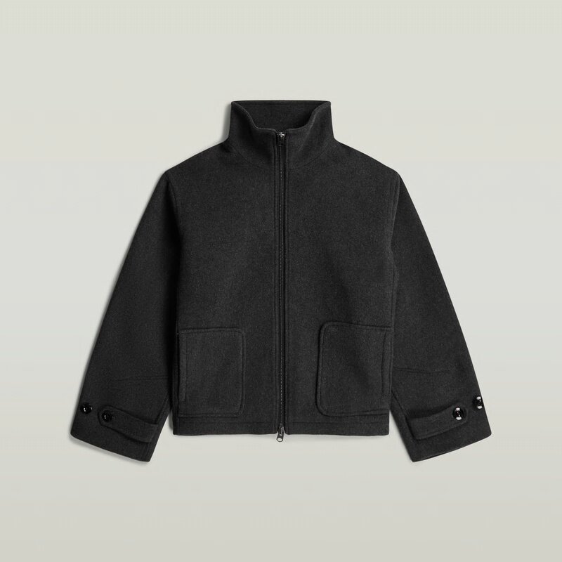 The Wool Blouson combines a classic design with a modern touch, featuring a lapel collar and a zip closure for a sleek look.