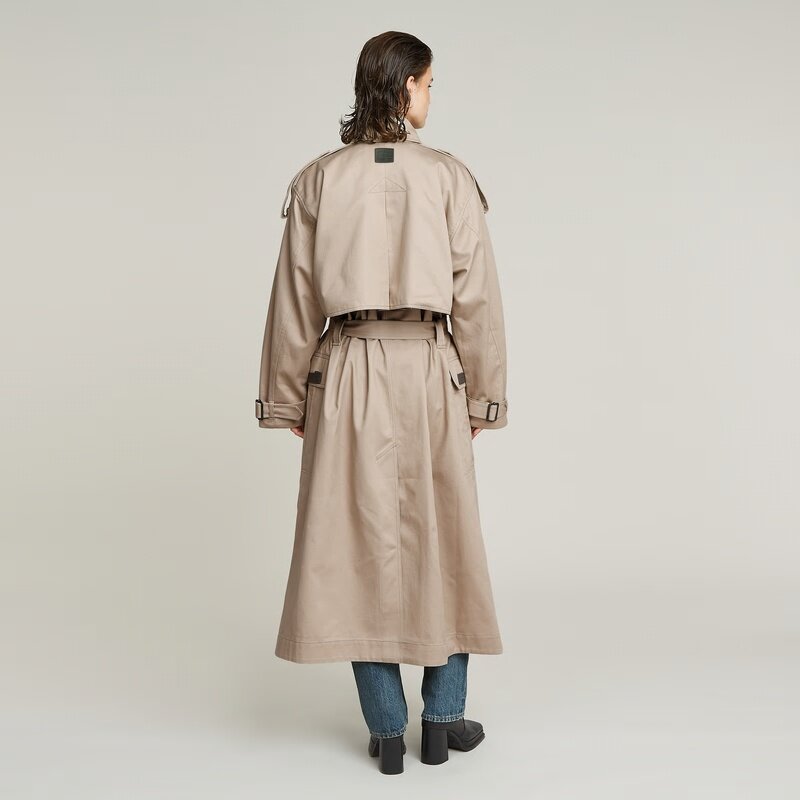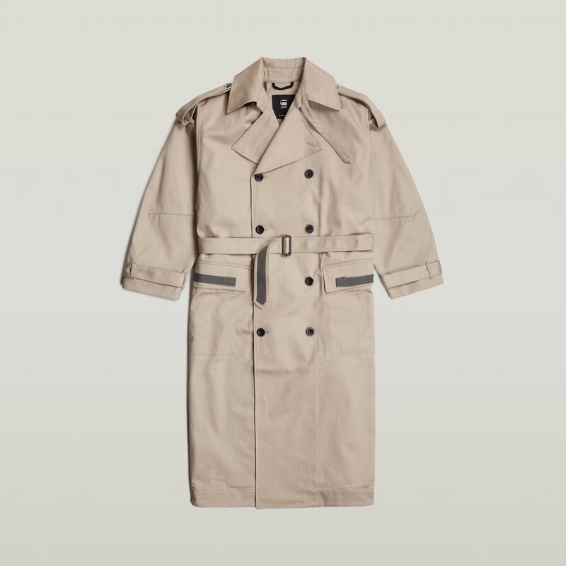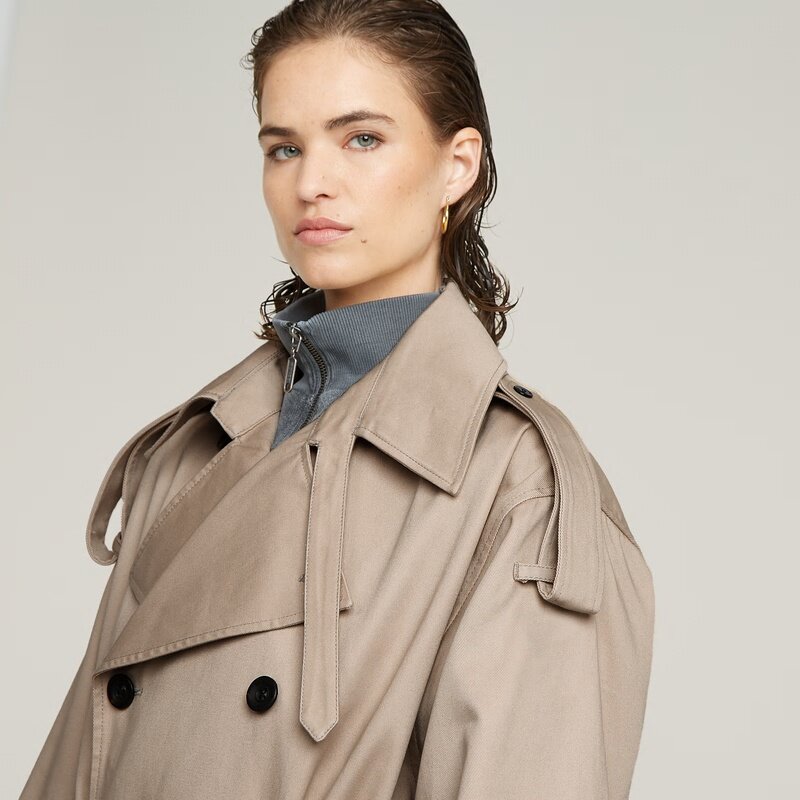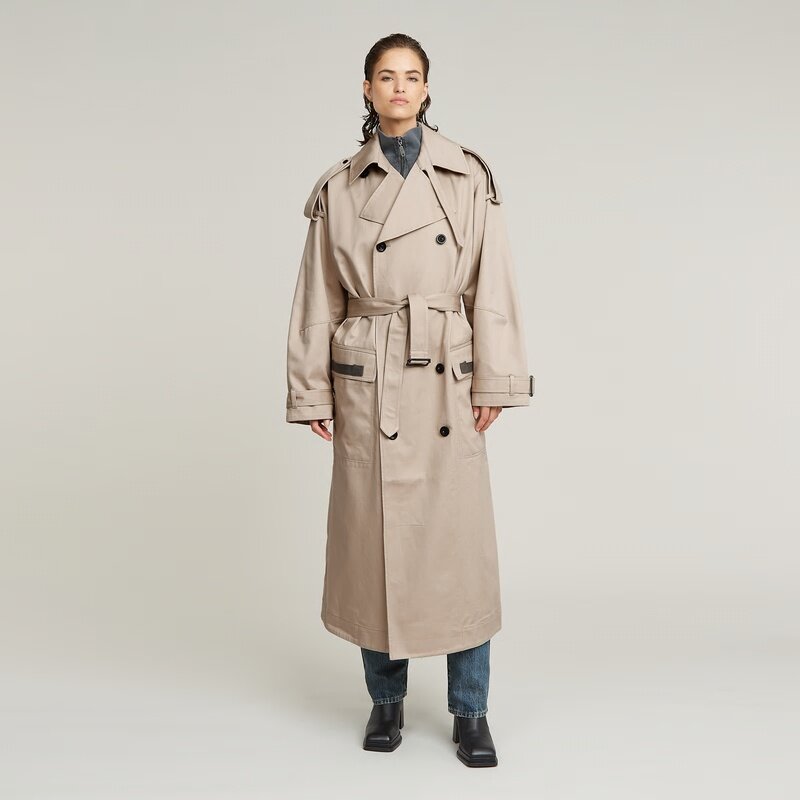 Trench coat Macro Balloon is oversized on every level. The epaulets at the shoulders are cut extra wide, just as the adjustable straps at the cuffs. The storm shield is lengthened, as is the slit at the back. Wide lapels and the double breasted closure add authenticity.