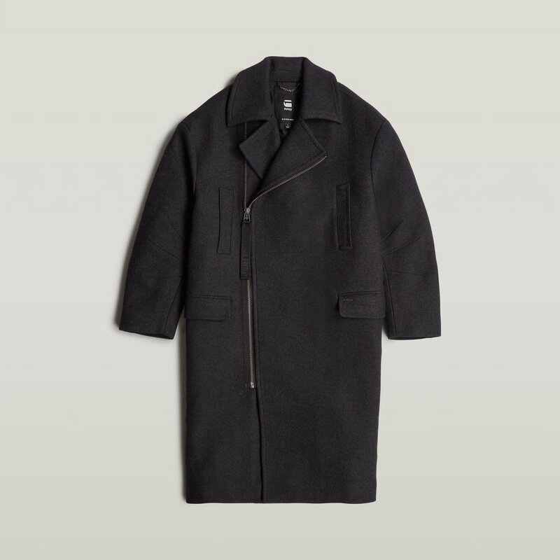 Cocoon coat Zip is fully lined and offers a quilted padding. This oversized coat has a revere collar with an asymmetric zipper. When fully closed a flat collar is created. Shaping seams are added to the sleeve and lower back. Welt pockets, flap pockets at the waist and an additional pocket inside, complete it.