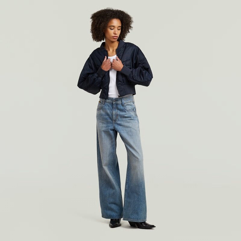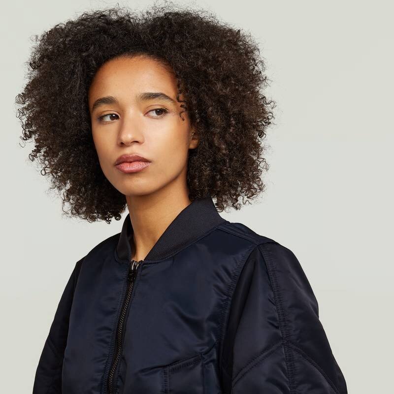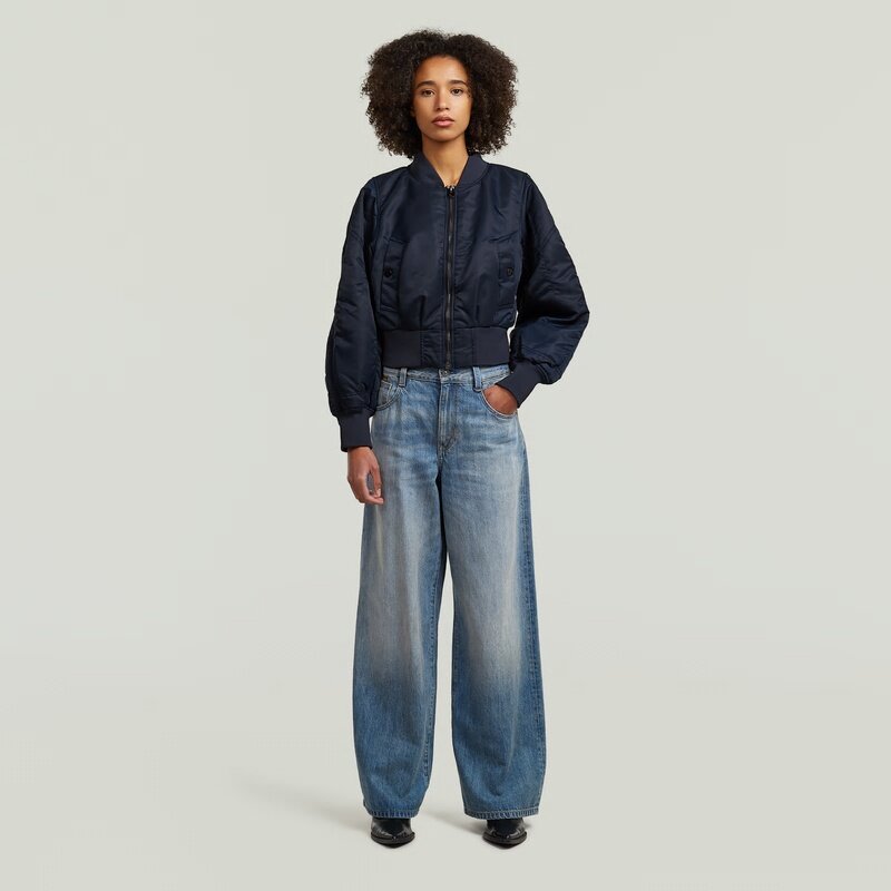 This bomber jacket features a loose fit and a short length, offering a modern twist on a classic design. The ribbed collar and zip closure enhance its timeless appeal.