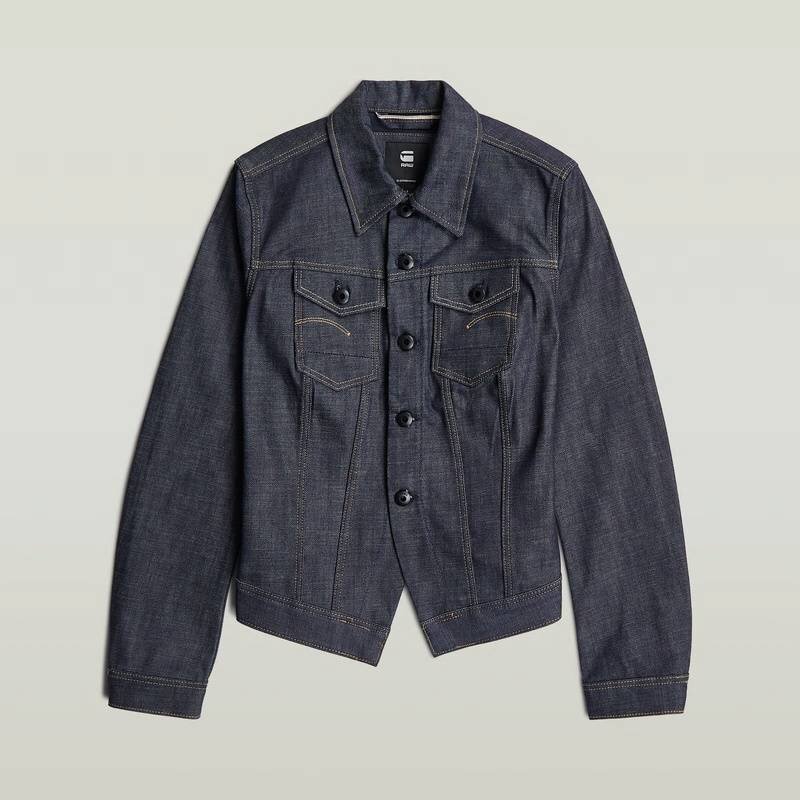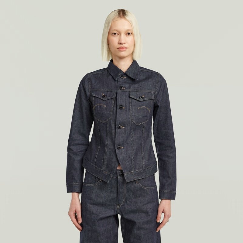 Made with premium Italian selvedge raw denim, the Pitched Hem Slim Jacket features a sleek design with a shirt collar and button closure, offering a refined look.