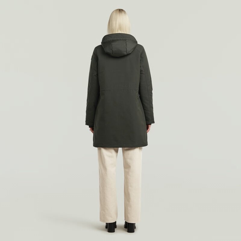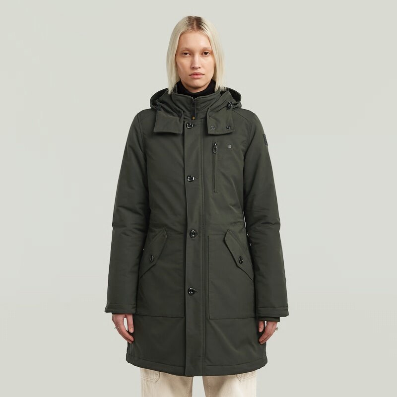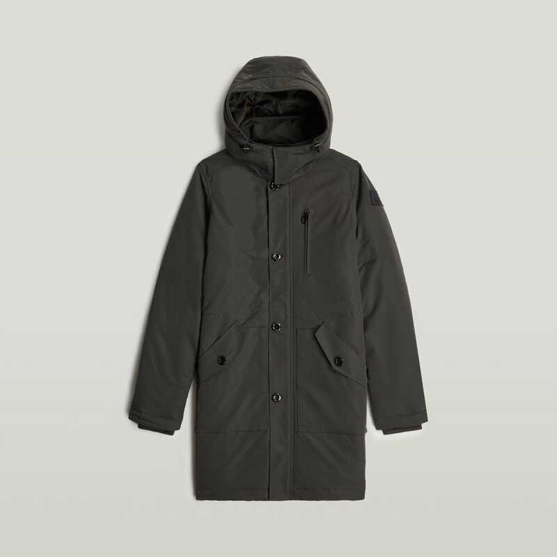 The Vodan jacket offers a slim fit with a stand-up collar and hood.
