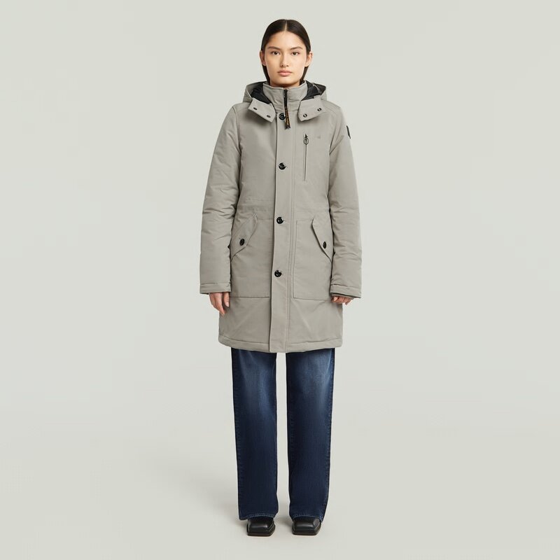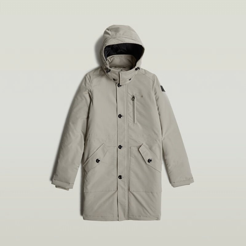 The Vodan jacket offers a slim fit with a stand-up collar and hood.