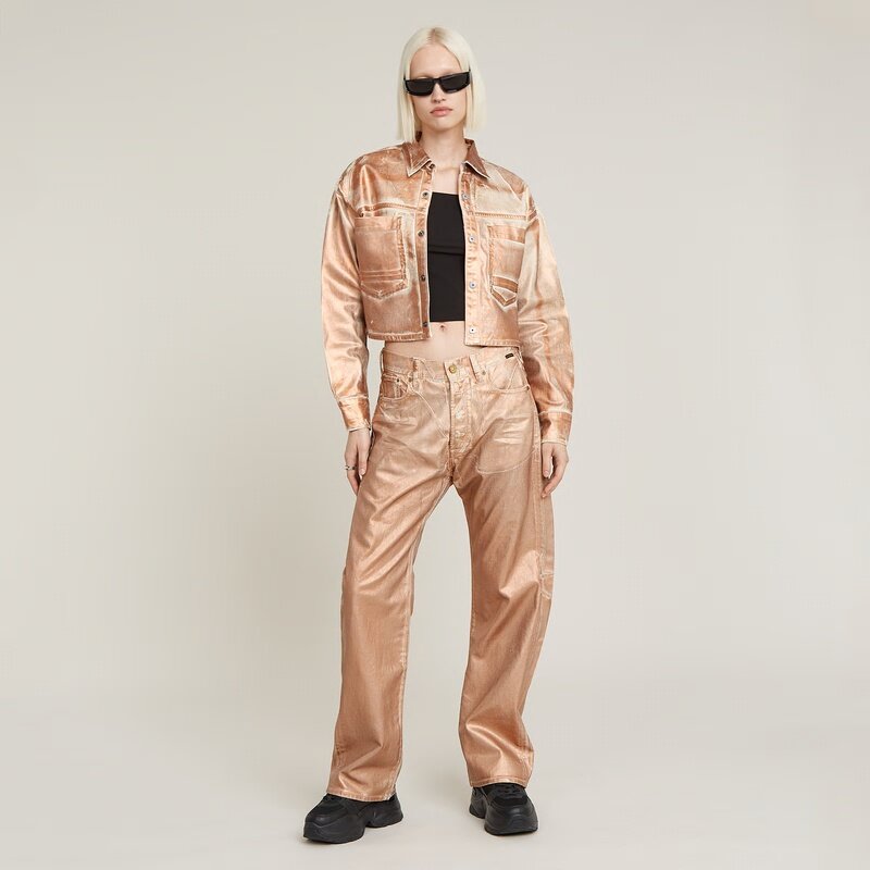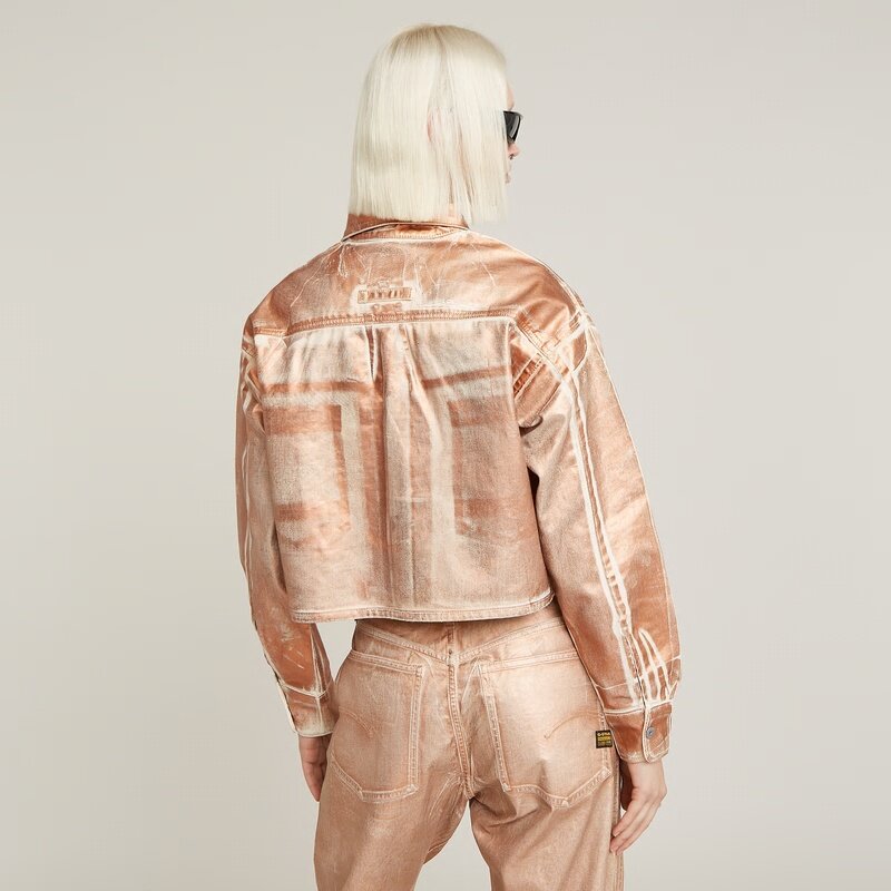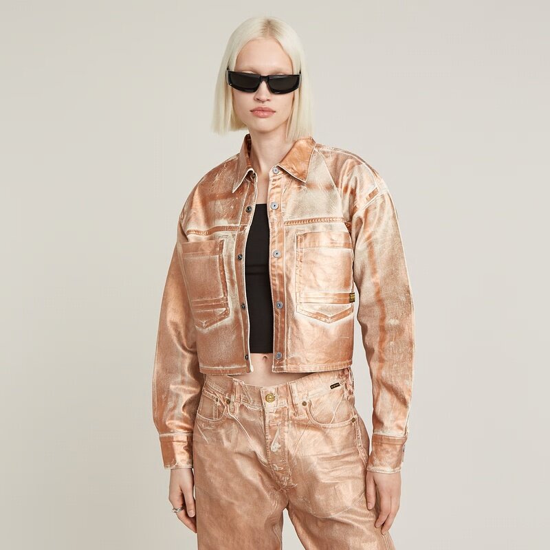 Overshirt 2 Pocket shows a foil printed design with a relaxed fit and a short length. This overshirt offers deep pockets at the front and a shoulder panel with a volume pleat underneath.