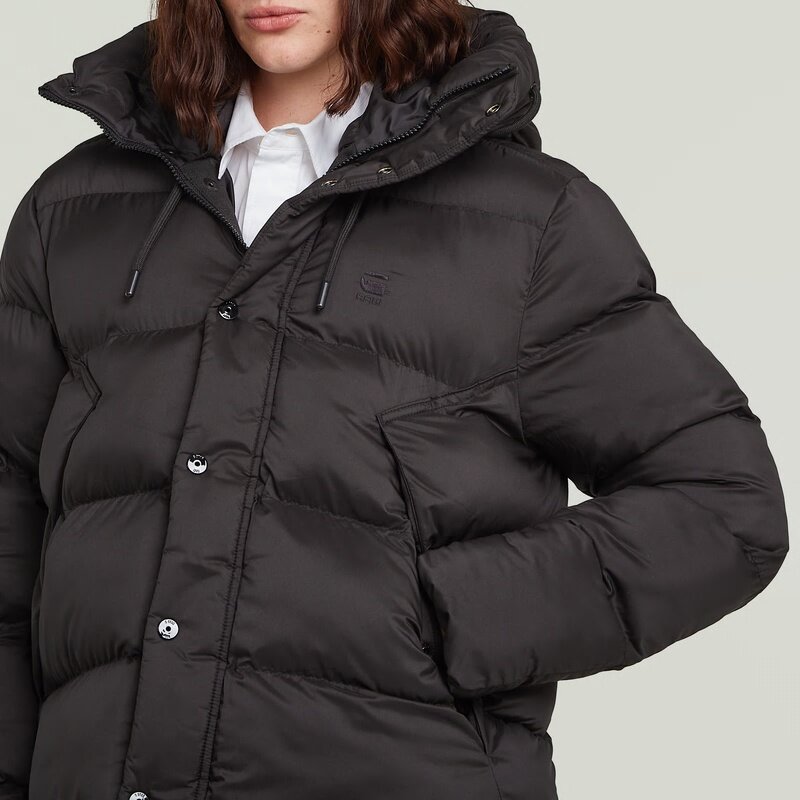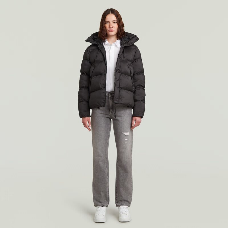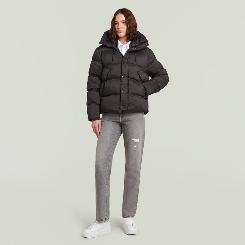 The Whistler Short Puffer offers a loose fit with a stand-up collar and hood, secured with a zip and snap closure.