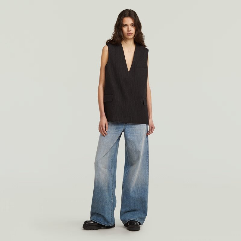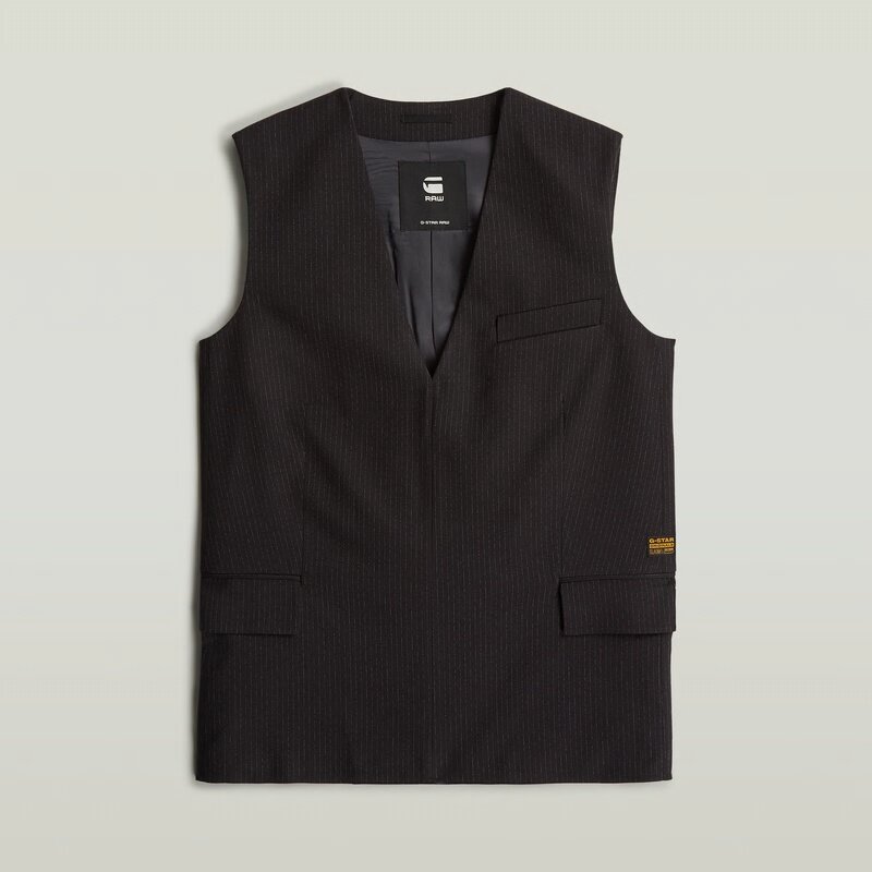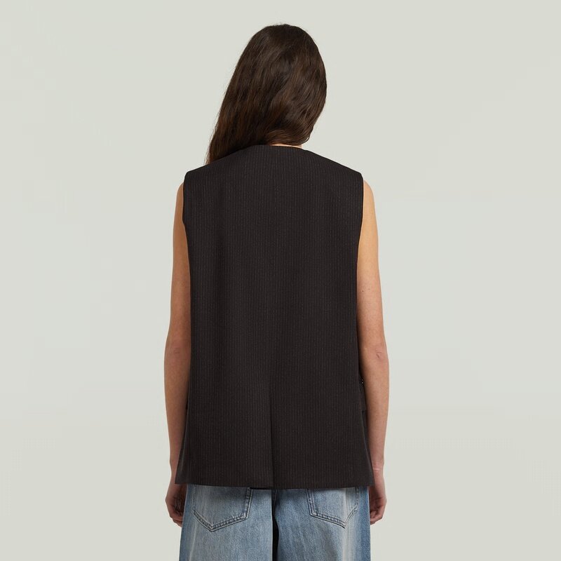 This blazer top combines a sleek design with a striped pattern for a modern aesthetic. Its sleeveless cut and regular fit make it versatile for various occasions.