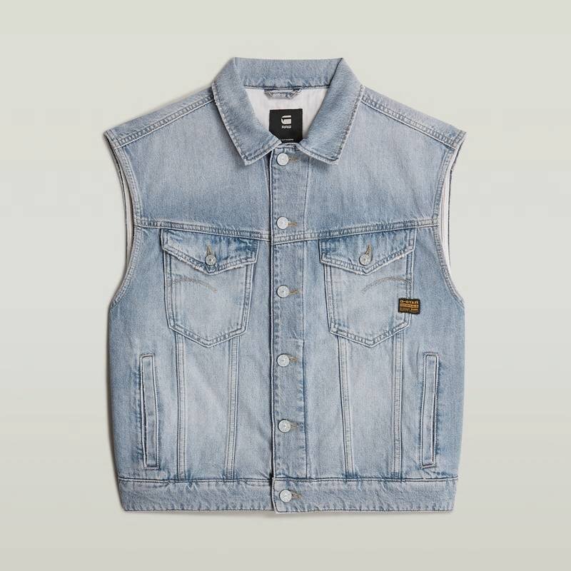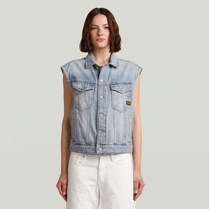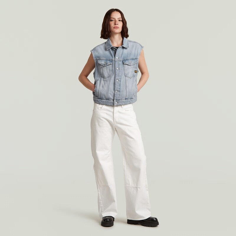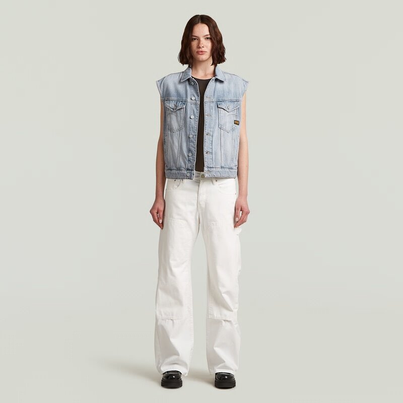 Relaxed Denim Vest offers a loose fit with a classic shirt collar and button fly.