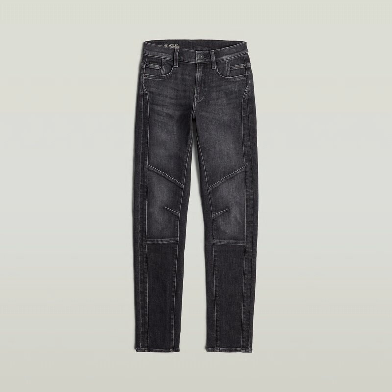 Jean Ace 2.0 Biker offers a slim leg. The panels at the knee enhance this slim fit. Both front pockets show a rivet reinforced coin pocket. This jean has a zip fly.