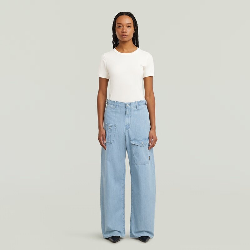 The Belted Cargo Loose 2.0 jeans offer a high waist and a relaxed fit with functional cargo pockets.