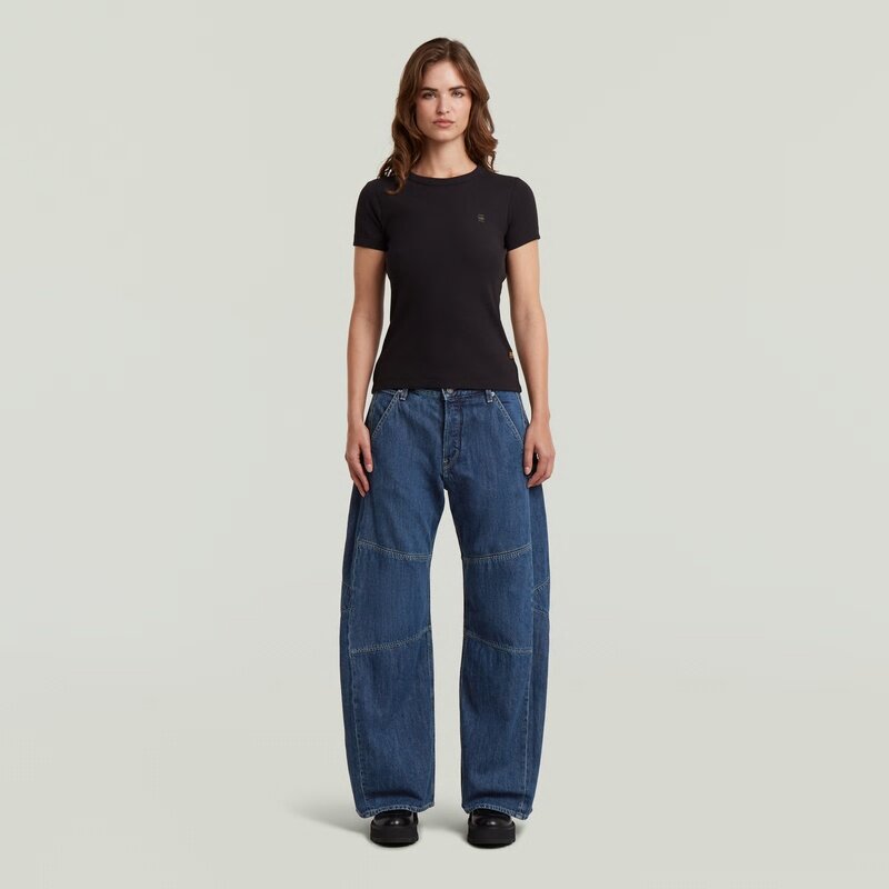 The Bowey 3D jean is part of our Anatomic Denim offer. A low-rise fit with a barrel leg. Strategically placed darts around the knee create a bow-leg shape, adding extra volume for a more relaxed feel. Utilitarian elements like a tool loop complete the look.