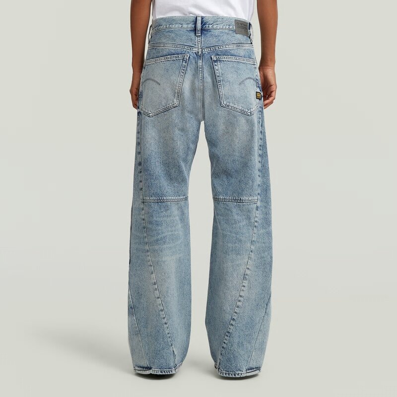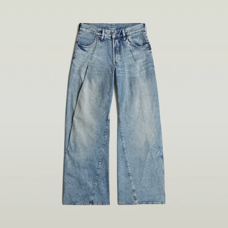 The Contor 3D Wide Pleat Jeans showcase a loose fit with a low waist and long length, offering a contemporary design with a button closure.