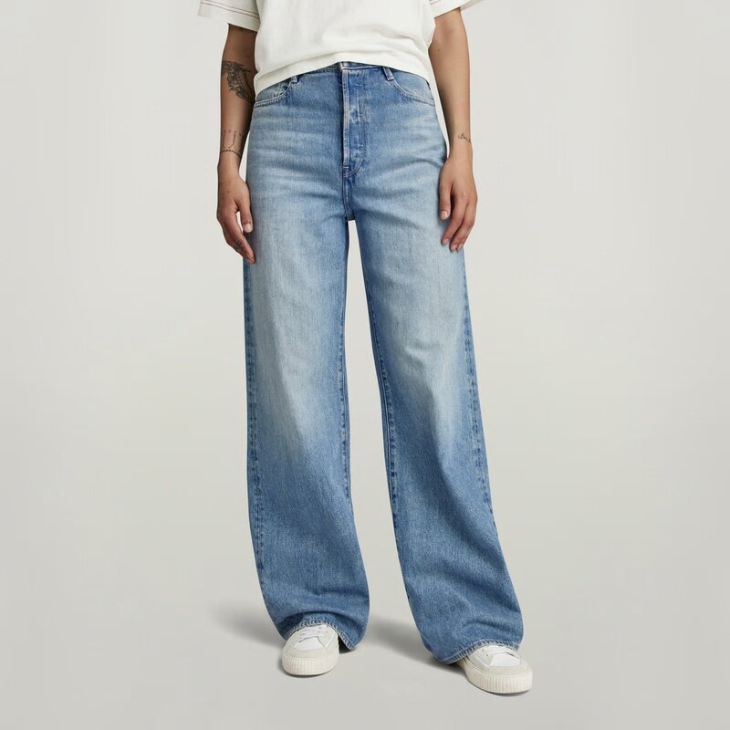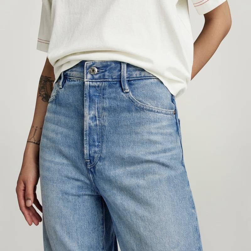 Jeans Deck 2.0 offer an ultra-high waist on a straight loose fit. These premium G-Star RAW Deck pants are designed to fit smoothly around the waist and hips and open up to a wider leg. Inset pockets are reinforced at the corners. The coin pocket is repositioned towards the inside, leaving only the rivets to show.