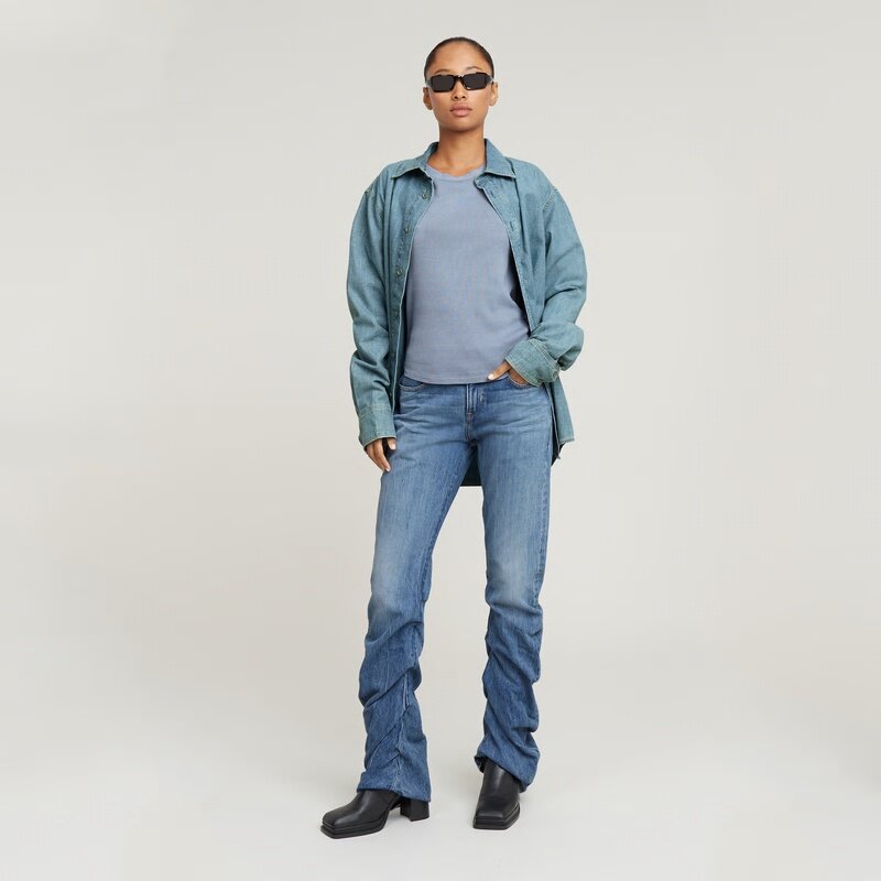 The G-Staq jean is part of our Anatomic Denim collection. A low-rise fit with a slim upper leg that subtly flares at the hem. Extended belt loops allow for styling with a wider belt. A stacked 3D effect at the lower leg adds structure and shape.